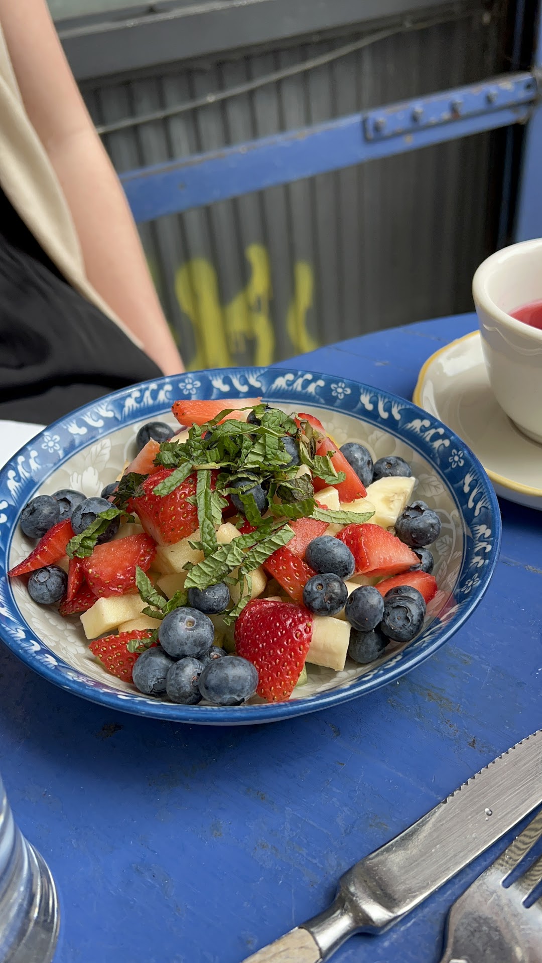 We sat under the blue and white striped awning that Cafe Gitane provides. Great people watching spot with a lot of foot traffic. The human experience truly fascinates me, and the outdoor seating is a front row seat to it. All sorts of characters walking by giving you everything from a live performance to style inspiration to the cutest dog you've ever seen.