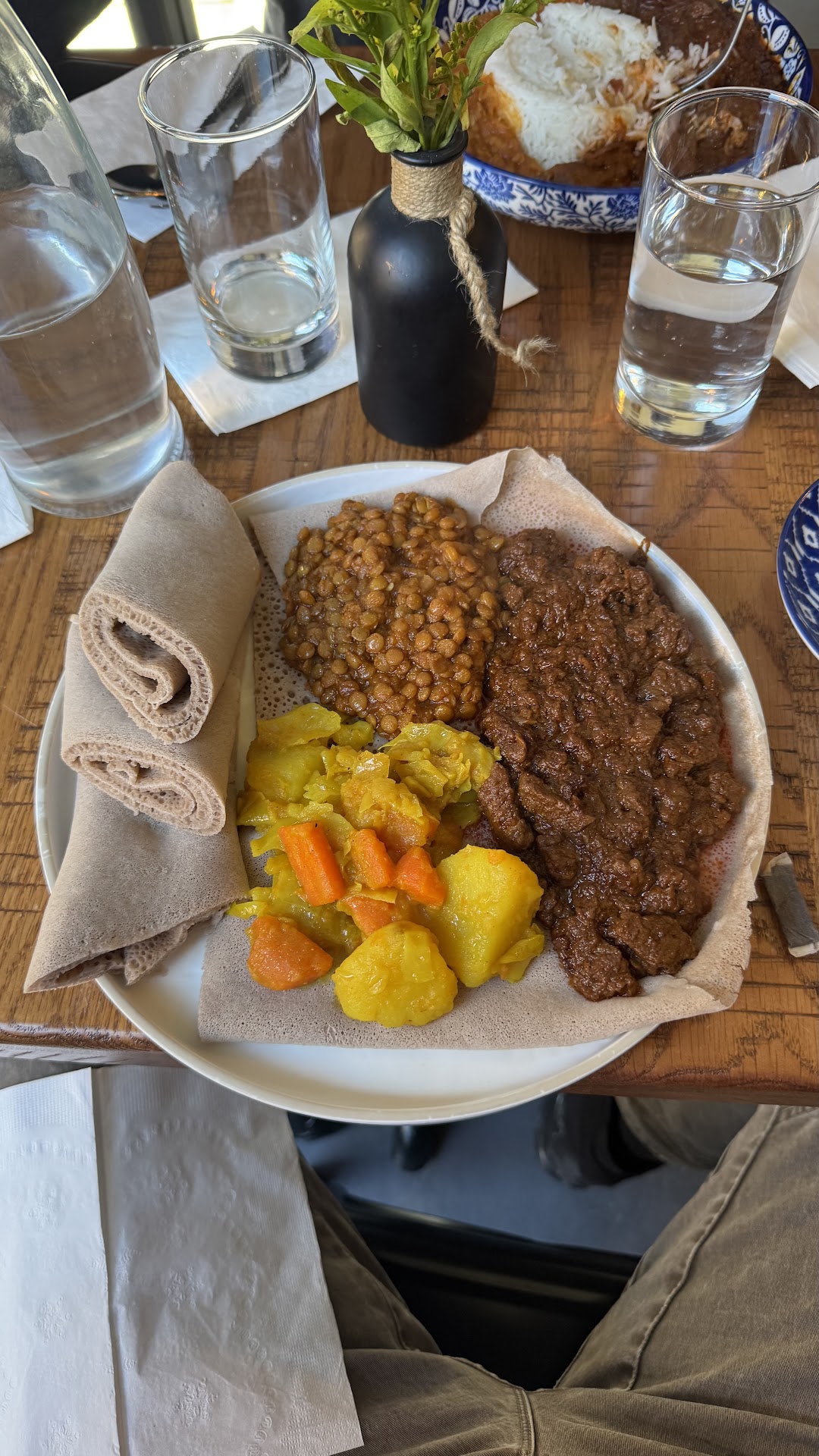 And I have to shout out that, while I love Ethiopian food, I usually feel kind of bloated after. I don’t know if it’s the ghee or the injera bread or what. But not this time! This is one of the only times I have had Ethiopian food, finished everything, and feel great and ready to move after.