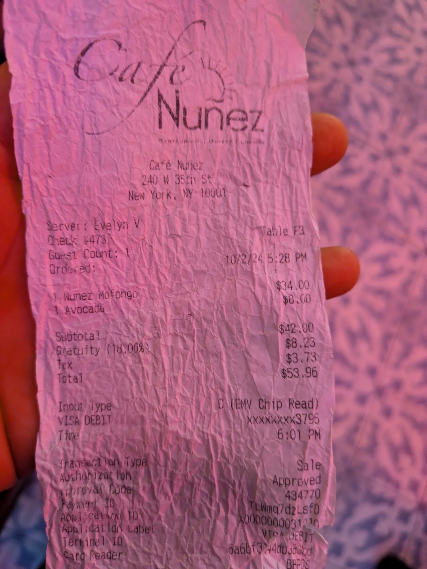 Read moreCafé Núñez is excellent in terms of food, great drinks and elevated environment. The only reason I’m giving 3 stars is because of the following: I visited CN again last night, we got a table in the back and since we are in the area the “supervisor” is ON my neck. I asked if we can get a table and we did, ordered a bucket of Coronas. For every 5-10 minutes our table was being policed feeling like we needed to chug our bucket as if we needed to go. As I’m finishing my first bucket, the supervisor brings me my check (which I have not asked for), I asked her “I can’t order no more, are you asking us to leave?” Her response “I didn’t know you wanted more”. First foul, as an individual that ran restaurants for many years, SALE SALE SALE make that money. She takes the check, I order another bucket; same scenario. Bring me the check. At this point I feel uncomfortable and I close the tab. Our group was prepared to spend about $250+ we ended up spending less than $90.00 due to how policed we felt.