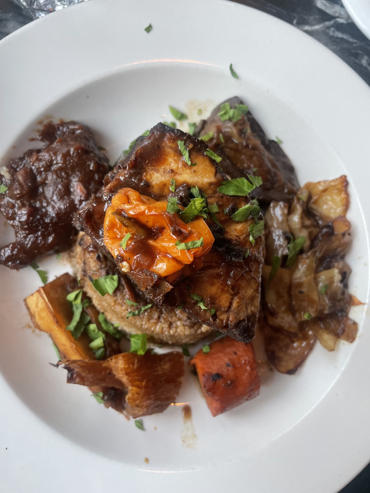 Today I went at 1pm. I have had a hard day. I havenāt eaten anything all morning. I asked the host/server working (his name was Cottom or something, I couldnāt decipher what he said exactly) if I could have a table outside for one, I pointed to the table him. He said yes and he would serve me. He came outside to give me the menu, asked how I was doing, I said, ātrying to hang in there.ā He gave me the menu and said heād come back to take my order. He gave me no water, as is customary when you are seated, but thankfully I had my own disposable bottle. I sat there for at least 15 minutes before he came back to check on me (in the meantime a nice elder Black man who grew up in the neighborhood had been keeping me company with conversation). Please note the restaurant was not unusually busy. This was 1pm on a Friday afternoon.