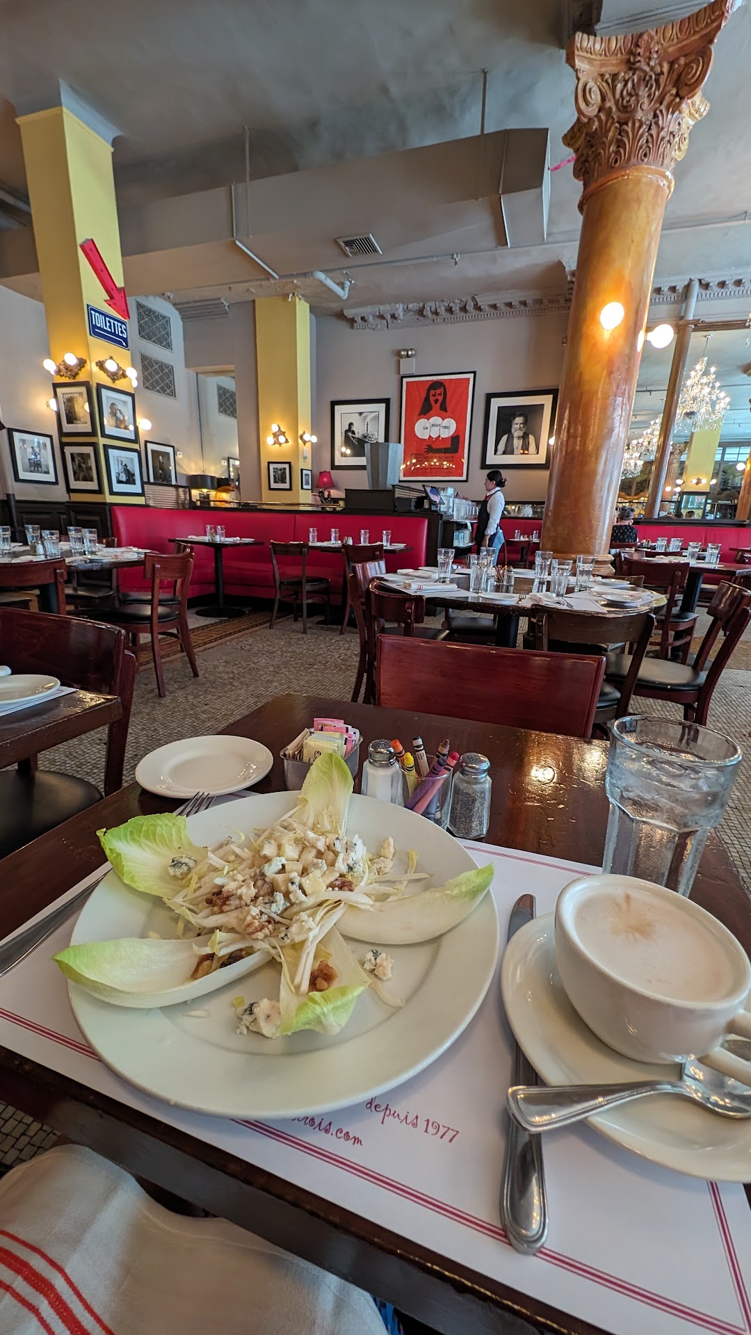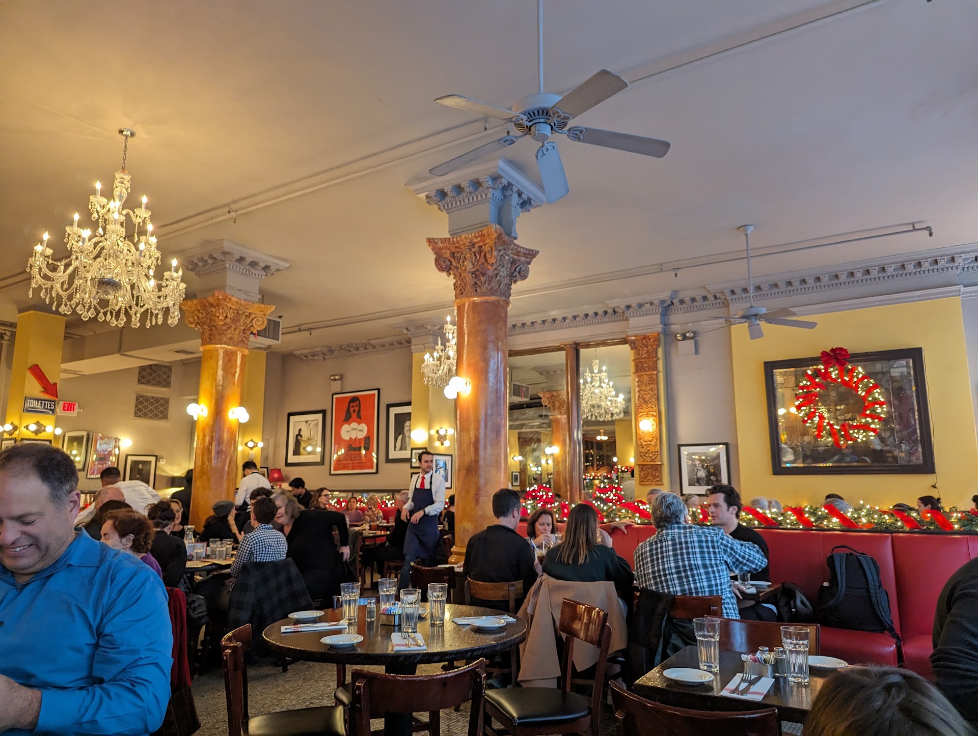 Just awful. Went for a pre-theatre dinner, we sat for about 10 minutes before anyone approached. The waiter finally showed up not to take drink orders or ask if we had questions, just a what would you like. I asked where the mussels were from and was told Prince Edward Island, which I thought was a good sign. I ordered them and my friend order a chicken crepe. Literally 3 minutes later our food was plopped down â obviously not cooked to order. The mussels were gritty, some hadnât been debearded, and there wasnât a bit of flavor in the broth. No herbs, no salt, no nothing. The frites were meh, more McDonalds than frites. My friendâs crepe had chicken, artichokes, and sun-dried tomatoes but no sauce. Bland. We saw our waiter from afar but he didnât stop by to check on us. When he finally stopped by â after our plates (mine half eaten) had been cleared, he asked how our meal had been. I answered honestly and he was shocked I hadnât told him during the meal. I told him that I would have had he bothered to stop by our table. He then made the empty gesture of bringing us a free dessert we hadnât ordered (and not one we would have ordered). To his credit, he did comp 2 glasses of wine, but not real recompense. This was a fun restaurant decades ago but is now a crappy tourist restaurant with indifferent service and bad food....