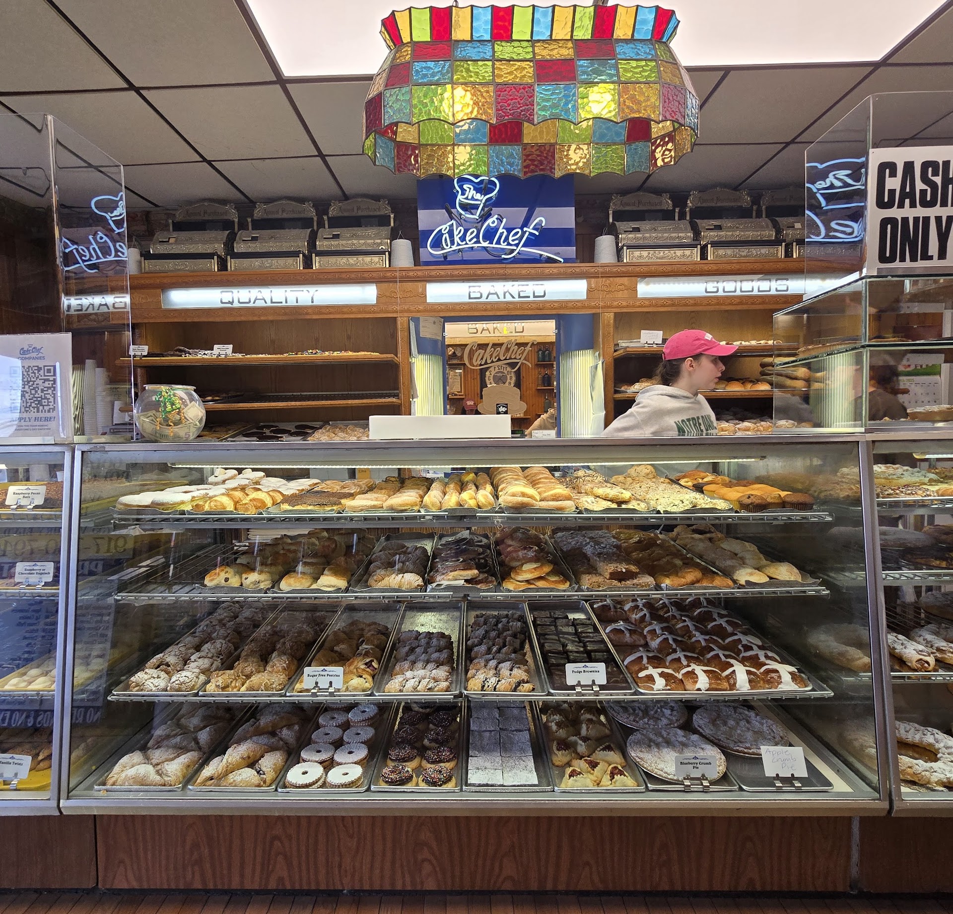 This cash only bakery may look small, but they have a great assortment of cookies, cakes, pastries, and more. It is so hard to pick something as a first-time buyer, so I opted for some lobster tails and slices of crumb cake. I was truly astounded on how reasonably priced everything is, especially since everything I purchased was great. The lobster tails were huge, loaded with cream, and were very flaky. The store itself is clean and the staff is very friendly and patient. Also, parking doesn't seem to be an issue in this area, so that is another plus.