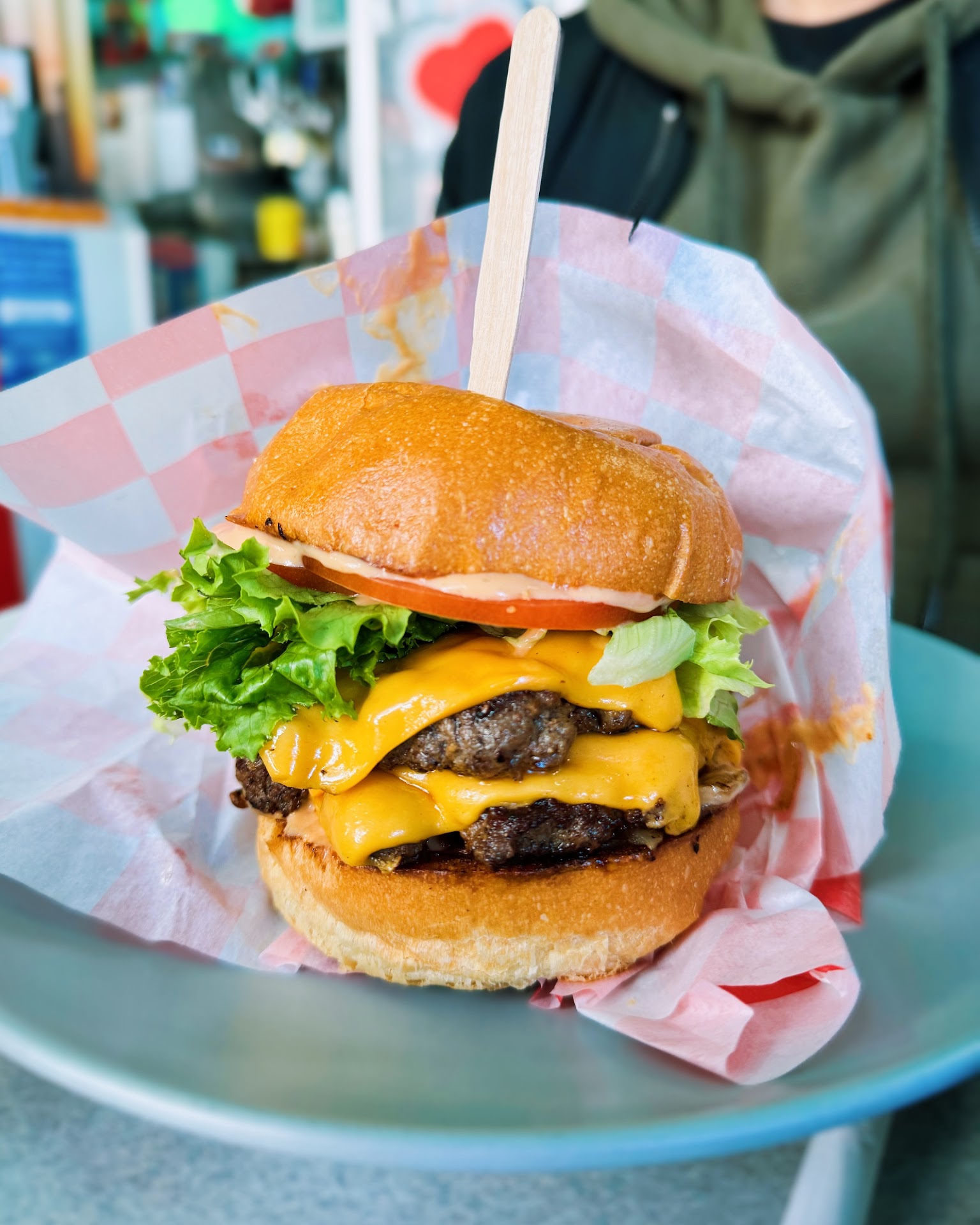 Read moreA damn good burger! 🍔 Seriously I’ve had a lot of burgers in my life and burgers happen to be my favorite food but this all American cheeseburger from @cake_burgers has to be one of the best burgers I’ve ever had. I mean from the top to the bottom the soft, perfectly toasted brioche bun, to the perfectly crisp and fresh lettuce and tomatoes and melty cheese, and their special burger sauce?! Whenever a restaurant has a special sauce I have to try it because I have high expectations and this one exceeded it. The grilled onions made it even better! The meat was perfectly cooked and so juicy. It was like my dream burger had finally come to fruition. I am also a big sweet potato fries lover and they make the PERFECT sweet potato fries, everything is balanced so nicely from seasoning to texture. It’s no surprise the chef has past experience working at Michelin star restaurants and even received compliments from THE Anthony Bourdain!!!! I can’t wait to come back and try their specialty cakes and other desserts! My new favorite burger joint 😋💕