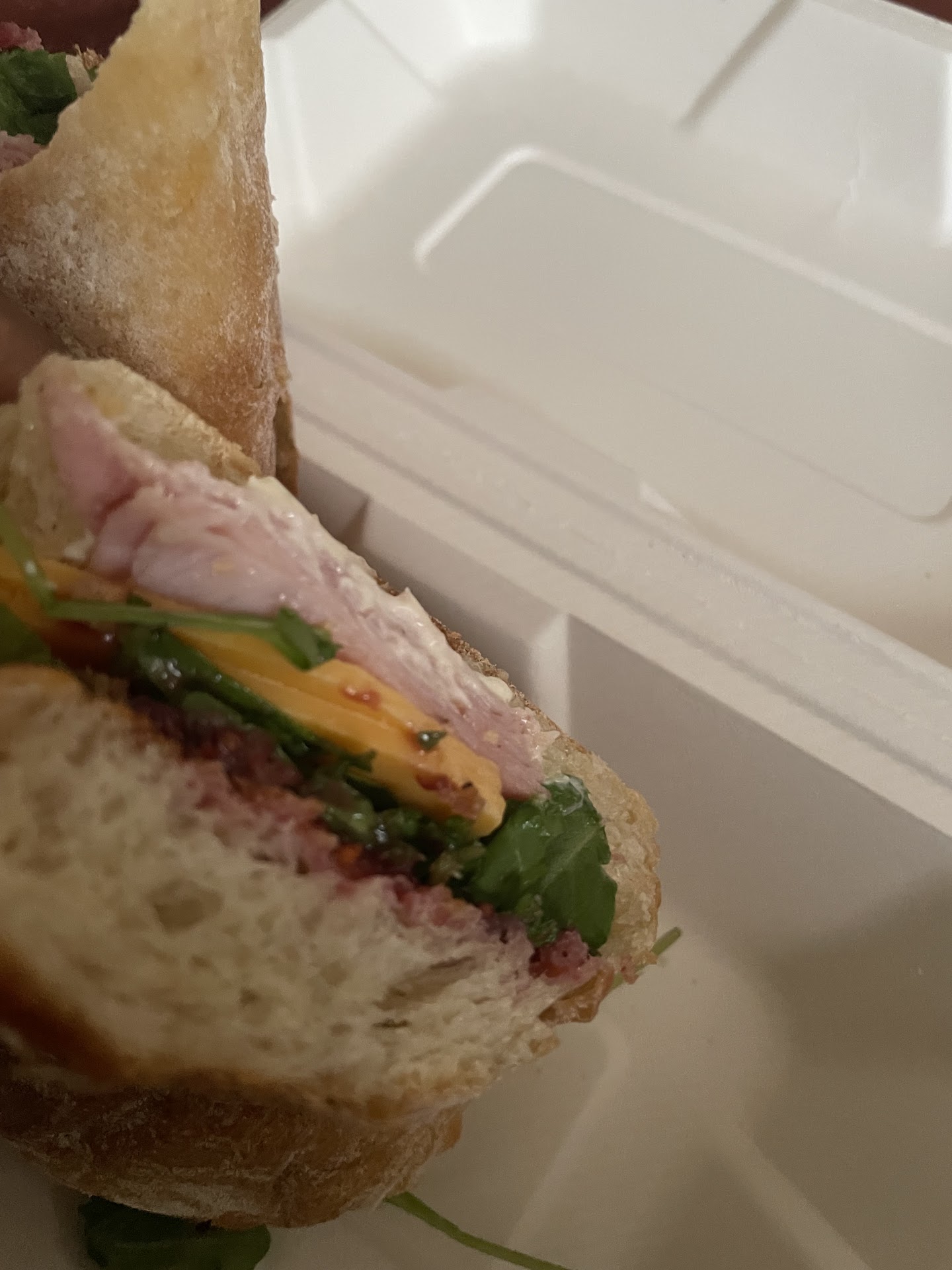 Ham & Cheese sandwich was rather underwhelming. Was expecting wayyyy more meat & cheese. But itās literally the skimpiest portion of ham and 2 sad looking slices of cheese. This sandwich is about as basic as it gets and local delis will LOAD up on the meat & cheese quickly, but apparently not here. I also see what they were trying to do with the fig jam, but I donāt think it quite worked in the sandwich.