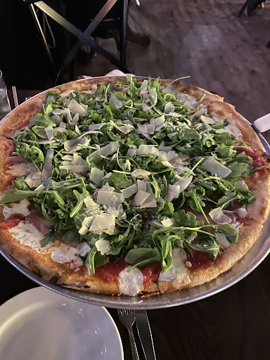 Amazing experience in this new location. I loved the ambiance of this place. Came here on a Friday night dinner for two and was able to get squeezed in with no problem. The dining room is huge and inviting. The decor is really beautiful from high ceilings and glass chandeliers to lit up bar with lit up amber walls and lots of seats. The menu was pretty similar to bay ridge location, good amount of salads to comfort foods like mac and cheese with truffle to chicken wings and fried calamari. Also lots of creative pizzas with Italian twist, you can find prosciutto toppings or soppressata to just a classic margherita or sicilian style and even white pizzas. You can also customize pizza with own toppings. Before we even read the menu we were greeted by friendly waiter who made sure we got some good drinks flowing right away, if you want a wine bottle its about 38 bucks so you can opt for just glass instead; my fiancés pinot grigio was chilled and big glass and it was not cheap quality. My margarita on the rocks was strong and not too sweet, they were not stingy with tequila! I also loved the fresh bread basket that was complimentary with and olive tomato spread, definitely authentic Italian! We decided to try fried calamari and omg it was the best ive had in a long time! Crispy with no oil, not too salty, big portion, and good marinara sauce with lemon; the breading was amazing it didnt come off and i felt like i was eating chips! The large wood fired pizza with truffle arugula parmesan and prosciutto was to die for, it came with eight slices with thin crispy crust; everything was fresh and flavorful it works very well together . I also loved the campania salad, goat cheese walnuts and arugula is a fresh match made in heaven. It was nice to have all seasoning on the table beforehand so I didnt have to bother waiter. I also tried a side of truffle fries and I wasn’t impressed, for seven bucks I expected more then a tiny basket and I tasted zero truffle, i was also not impressed with just a little ketchup, they can do something more creative like chipotle mayo. Also when I asked for hot sauce they gave me buffalo sauce instead, i was expecting something closer to tobasco. I think overall this place is great for birthdays girls night date night or family dinner and the price is right! I do feel the dining room can get pretty loud making it hard to talk across the table. I also don’t understand reservations for two people for rooftop, seems like thats the only part of restaurant that takes reservations for two seriously while indoor and outdoor part just wants walk ins only , hopefully next time I return ill be lucky enough to experience the highly...