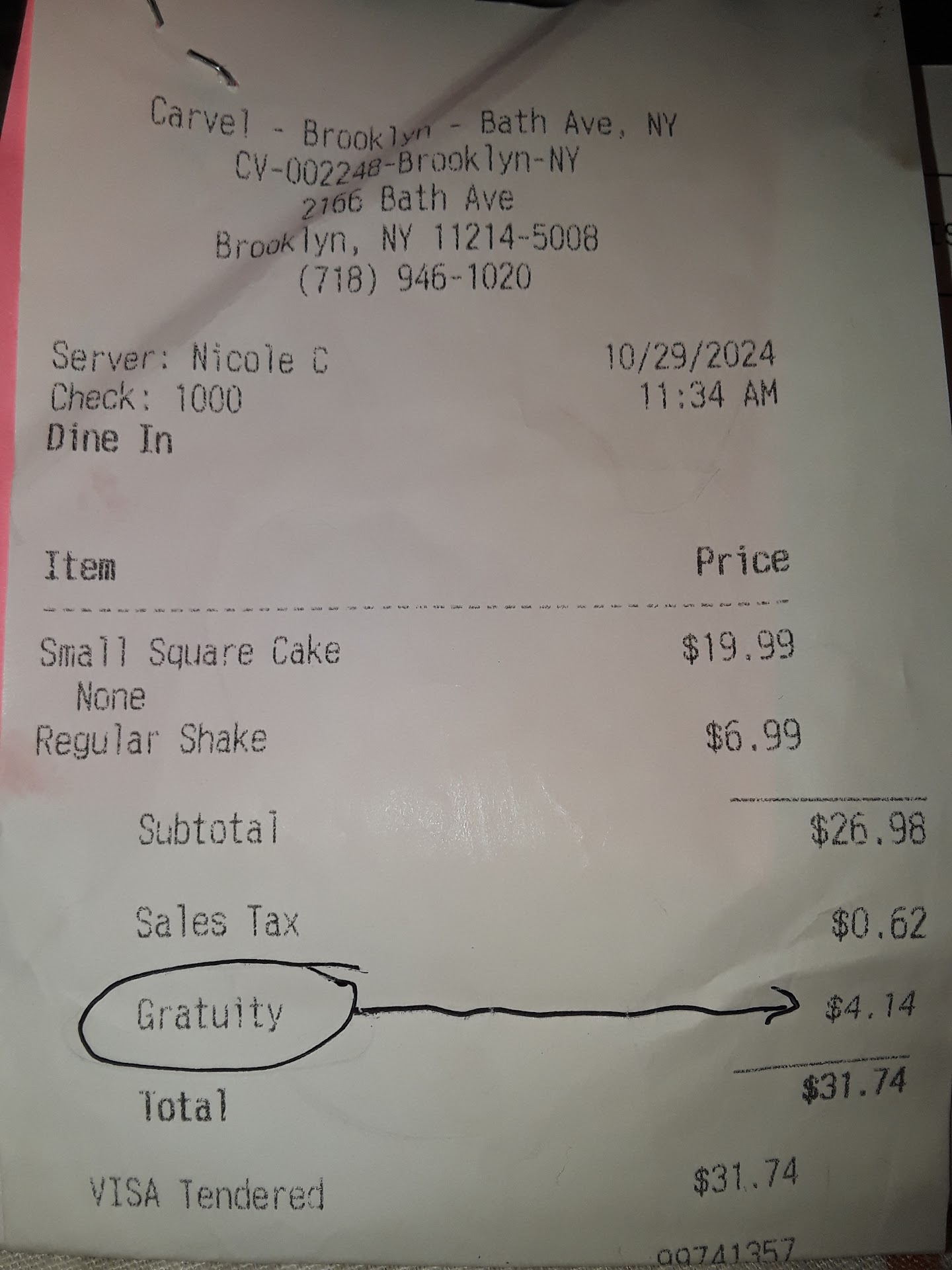 Ā Ā Ā Read moreI recently visited the Carvel on Bath Avenue looking forward to enjoying a classic cone, but I was very disappointed with the experience. After paying, I received my cone and immediately noticed that the soft serve was a strange beige color instead of the usual milk white Iāve come to expect from Carvel. I asked about it, but there wasnāt much explanation.