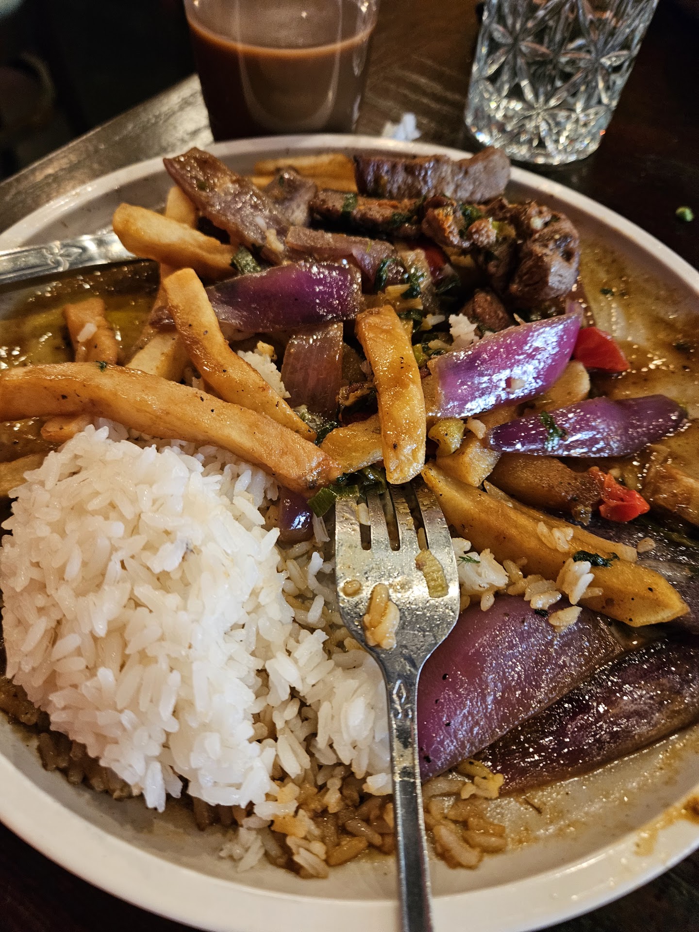 Meals ordered: Lomo Saltado (2×) with 1 red beans. Pollo Combo Special with white rice & black beans + side order of fries. -Tostones as side, not appetizer.