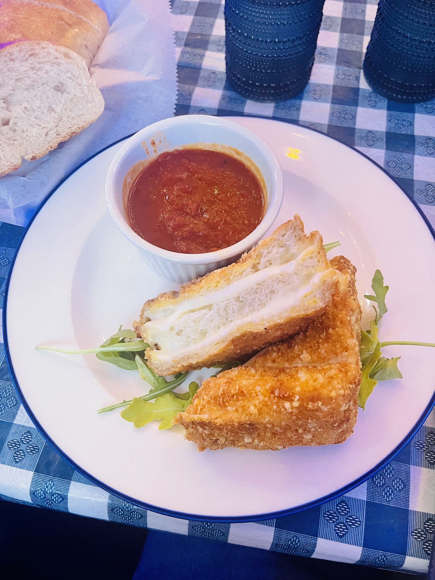 I really wanted my fiancee to eat with me in their outdoor dining area because I wanted to enjoy my meal observing the street where many of my ancestors lived in when they first arrived in America. Therefore, we chose an outside table. Little did we know our server would be somebody who had just arrived from the old country like Vincent is. Although he was still learning the menu himself, he had no problem going back and forth asking his more knowledgeable colleagues for help. The first thing I ordered to start eating was a Mozzarella in Carrozza, or Fried Mozzarella. We enjoyed it with a side of some of their delicious Marinana sauce. We later ordered Calamari Fritti which we really enjoyed with some lemon on top of them. That is what we ordered to start our food journey in this restaurant which I still do not regret choosing.
