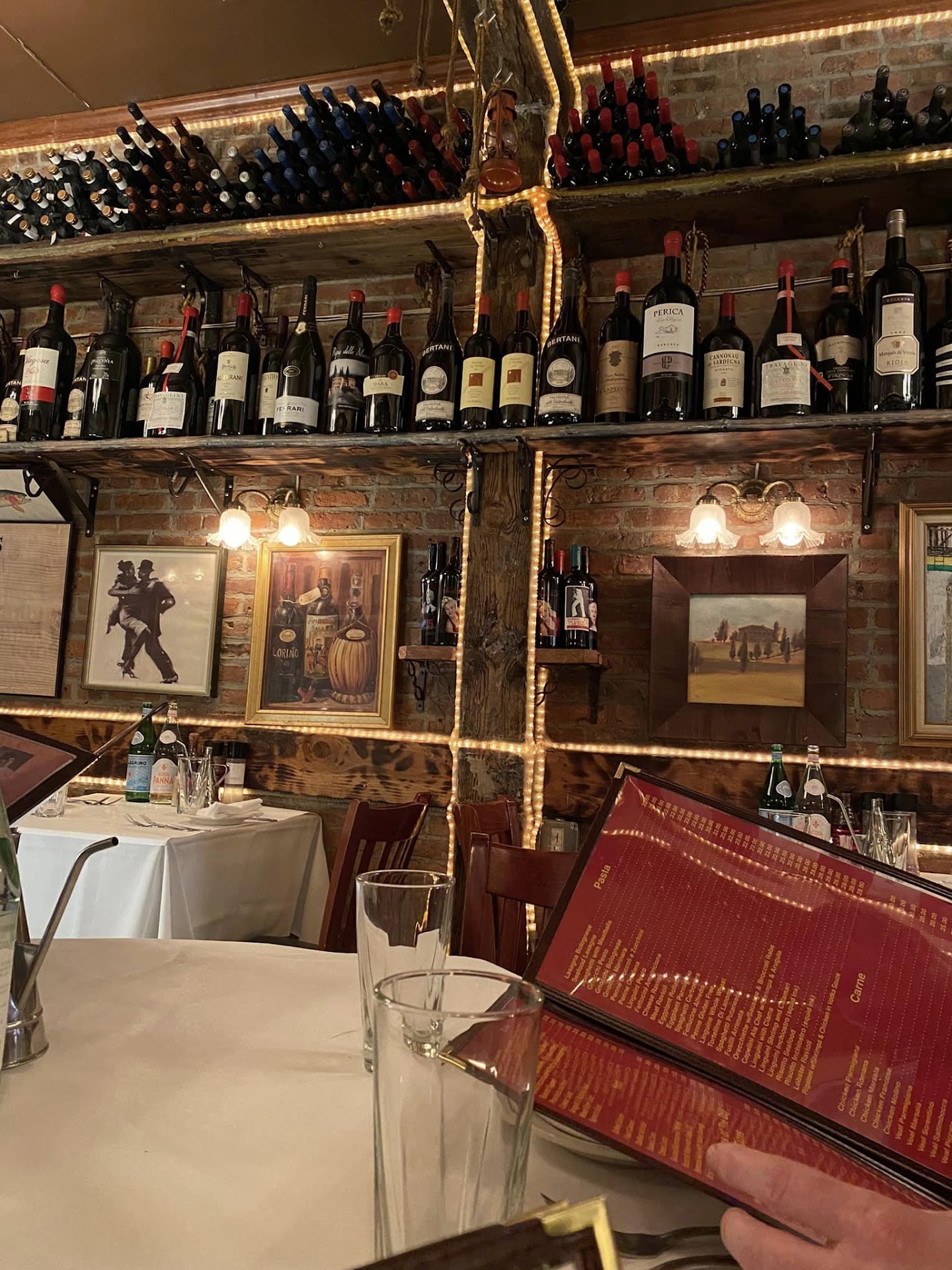 I ordered the stuffed artichoke and I literally gasped in awe after the first bite. It was incredible and so very flavorful. My guests ordered the chorizo, the calamari, and a bottle of Chianti. It is also worth noting the INCREDIBLE wine selection of Trattoria Casa Di Isacco. I mean hundreds upon hundreds of bottles line the walls, from 750ml bottles, to magnums, and beyond. This place is a wine-lover's dream! And, believe it or not, the wine is reasonably priced, too. Our bottle of Chianti was $35.00 and paired perfectly with each of our selections.