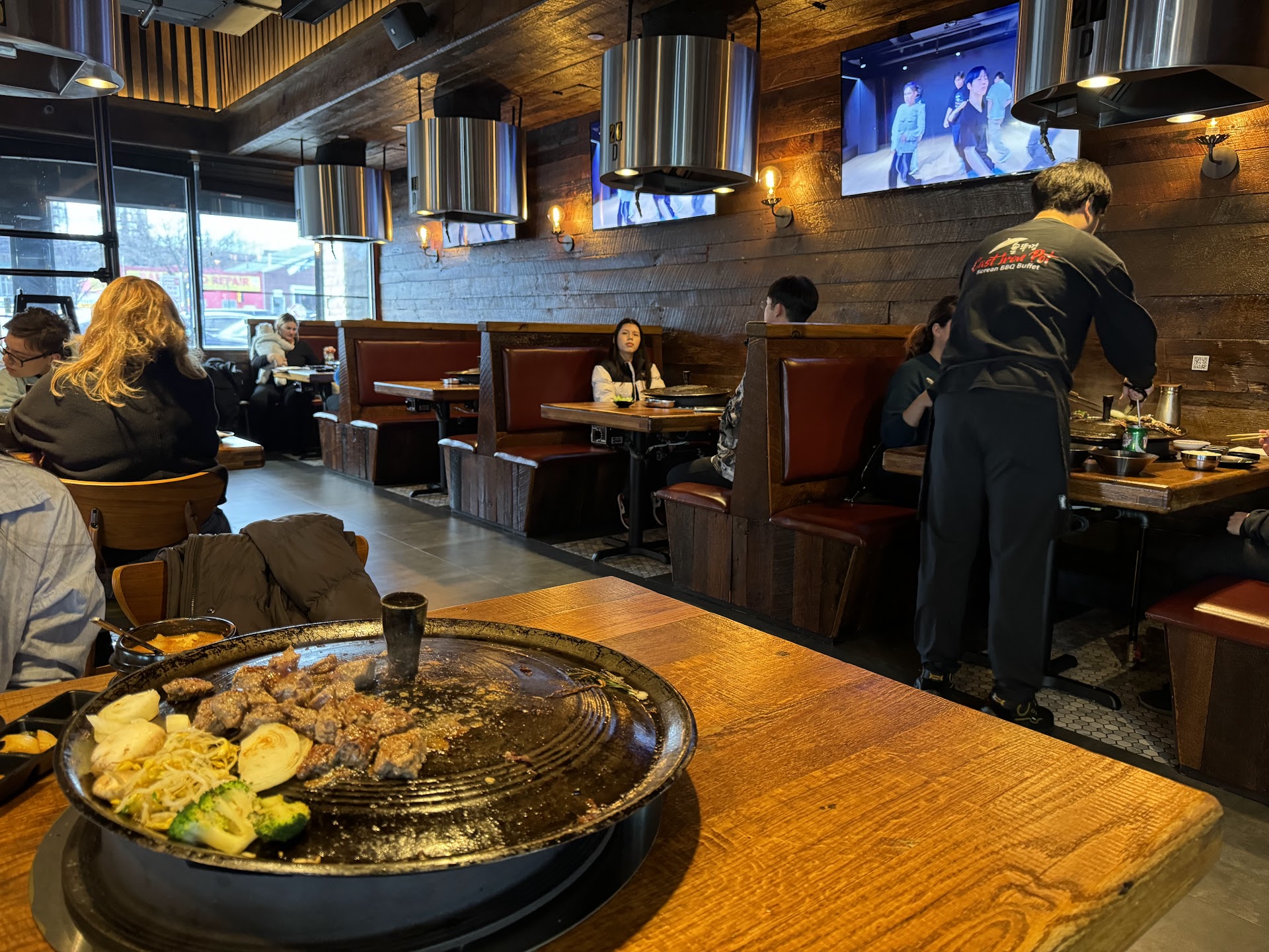 The real issue is how they serve the food. We had a table of SIX. They would consistently serve 1 or 2 orders of brisket. Mind you we would only ask for this 1 meat, no steaks, nothing else. There would consistently be “waiting” periods where the food was finished and we’d have to wait for our next order to come in and cook. Now the “2 hour time limit” becomes an issue because they’re purposely slowly parsing out the flow of food and we never were able to get full due to all the waiting time before servings.