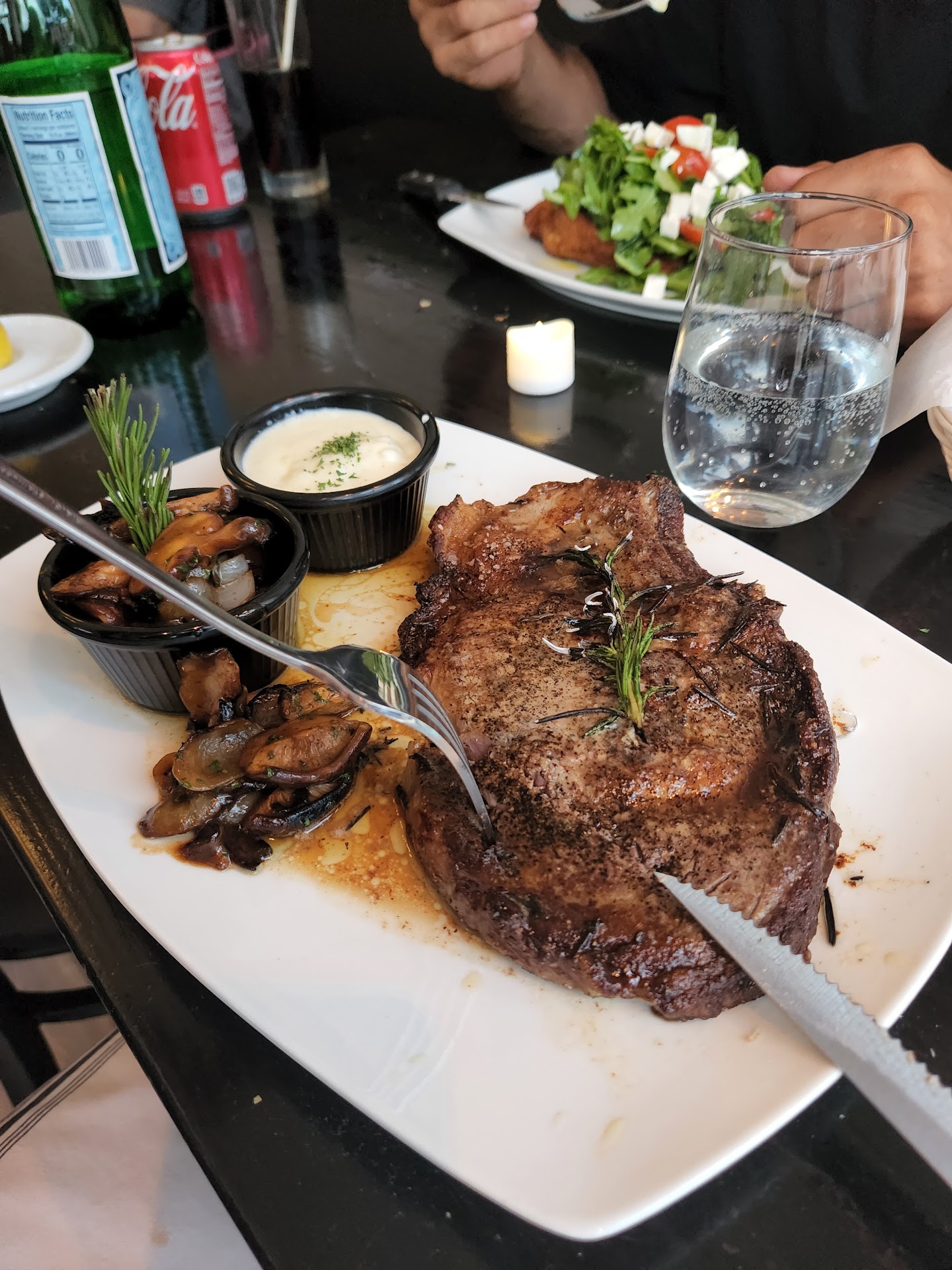 Read moreWe came to eat dinner looking for Italian cuisine. After our favorite Italian eatery closed down, we were looking for a new Italian restaurant to frequent. This restaurant had a high rating on yelp so we decided to give it a try. The atmosphere is fine, but the place itself is not that big. When fully booked, it feels cramped. One positive thing that I can say is that the service was really nice and the staff was friendly. Now on to the negative. We weren't really impressed with the food. We ordered a bunch of appetizers and they were really mediocre. I know it's not fair to compare how a chef prepares the food, but when you're comparing similar dishes and you kind of know what to expect and that dish doesn't live up to that expectation, it leaves a bad taste in your mouth. My husband's branzino was too oily and tasted bland. The same can be said for my pork chop. It was too salty and greasy. I took one bite and I couldn't eat anymore. That was the overall theme, the food was either over-fried or too greasy. On top of that, I asked to take my meal, the pork chop to go, only to discover the next day that they didn't even pack it. There is no way for me to prove it. So there goes $32 down the drain. I'm really surprised and disappointed at the same time. Usually Yelp reviews are spot on. Not only was the food lackluster, but I paid for the meal which I barely touched and wasn't packed to go. We'll keep looking for another...