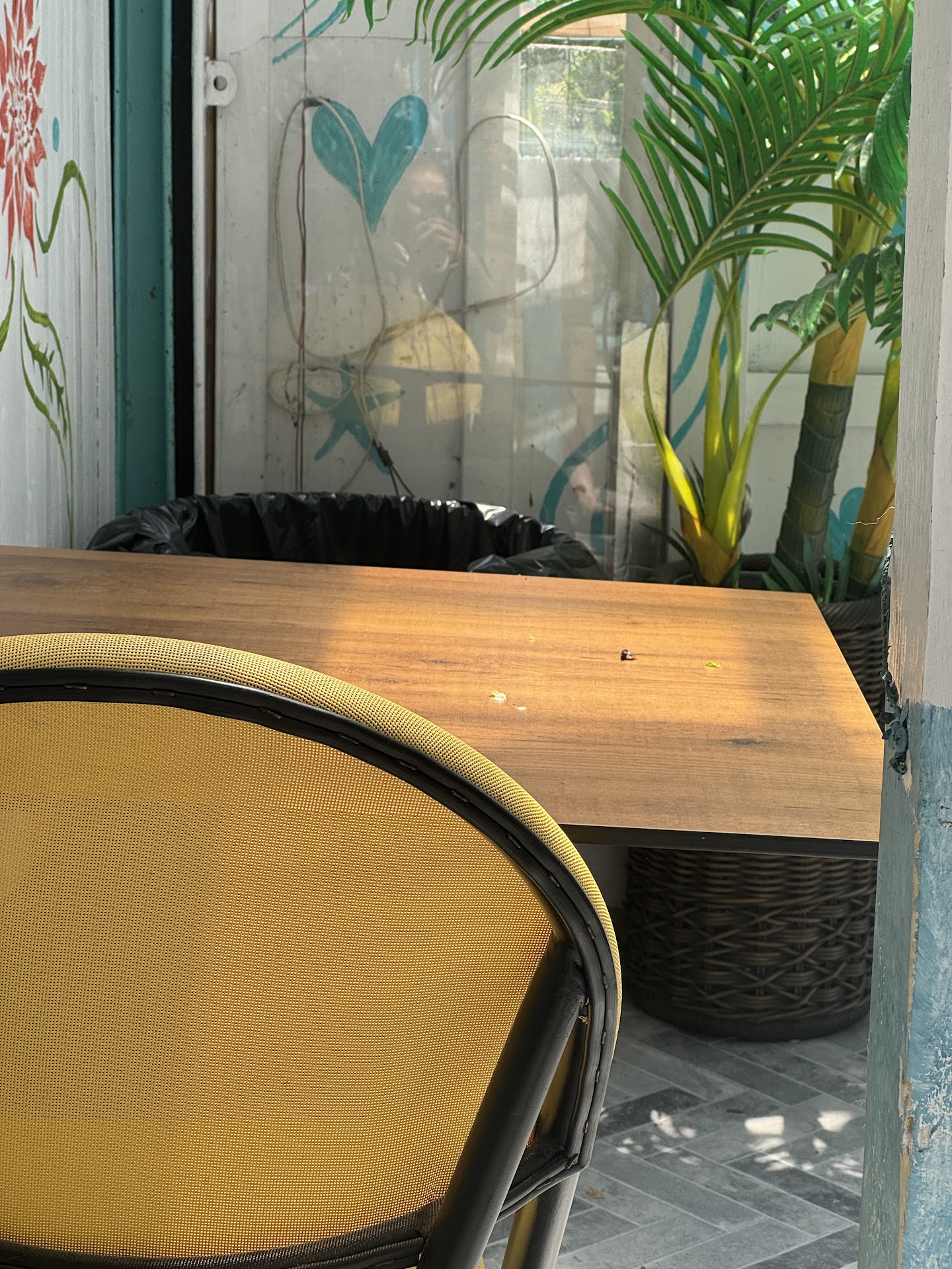 Read moreI stopped by today to have a lunch, the whole place was occupied by people working with computers so I ordered and headed out to sit in the outside area. I was disgusted and even lost my appetite to see that every single table was dirty with crumbs and spilled liquid stains. I went to tell to the guy working at the cashier that all the tables outside are dirty, he just rolled his eyes. I would expect someone go and clean the tables for paying customers ? I asked my order to be to go because you pay for restaurant prices and can’t even have a clean table to eat ? It’s disappointing to see that no one cares about hygiene there. I’m wondering what’s happening in their kitchen. 🤮 EDIT : thank you for your response, if you did check the cameras,all the tables were dirty. the 1 table inside was DIRTY, 2 tables in front outside were DIRTY, and all tables in the back were also DIRTY. And also I was there more than 3 minutes because I was waiting for my food to be prepared, more than 10 min, no one came once to clean all the dirty tables and when I told them about dirty tables he just rolled his eyes. And I’m sure these tables were sitting dirty for a while because no one there cares to clean them. Do you expect me to go with my plate to a dirty table ? That’s why at the end I asked to have my food to go. It’s not the first time this happened that’s why I write the review !...