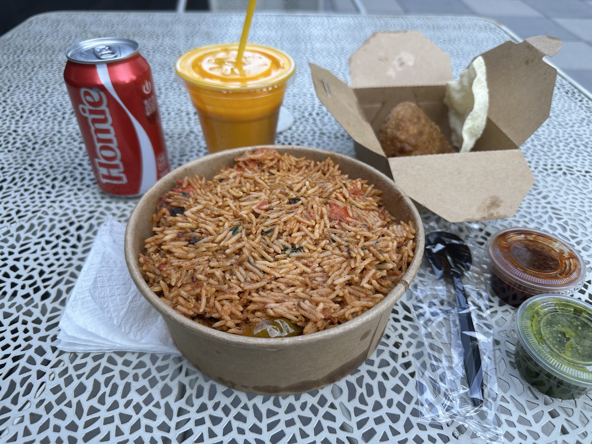 Read moreI see why it’s five stars. Everything I tried was delicious and flavorful. The chicken is really well marinated no matter what dish you get. I had the Tikka Masala and the Tikka Biryani, both with chicken. I recommend every appetizer, I tried them all. I really liked the Pakora, a great alternative to onion blossoms or rings. The samosas were hot, big, and stuffed. The Mango Lassi is good and their drinks could be colder, but they have Thums Up and Limca which are popular sodas in India. Ideal for pick up but there are seating spaces at the opposite street corner. Regardless where you eat it, expect to enjoy the flavor -...