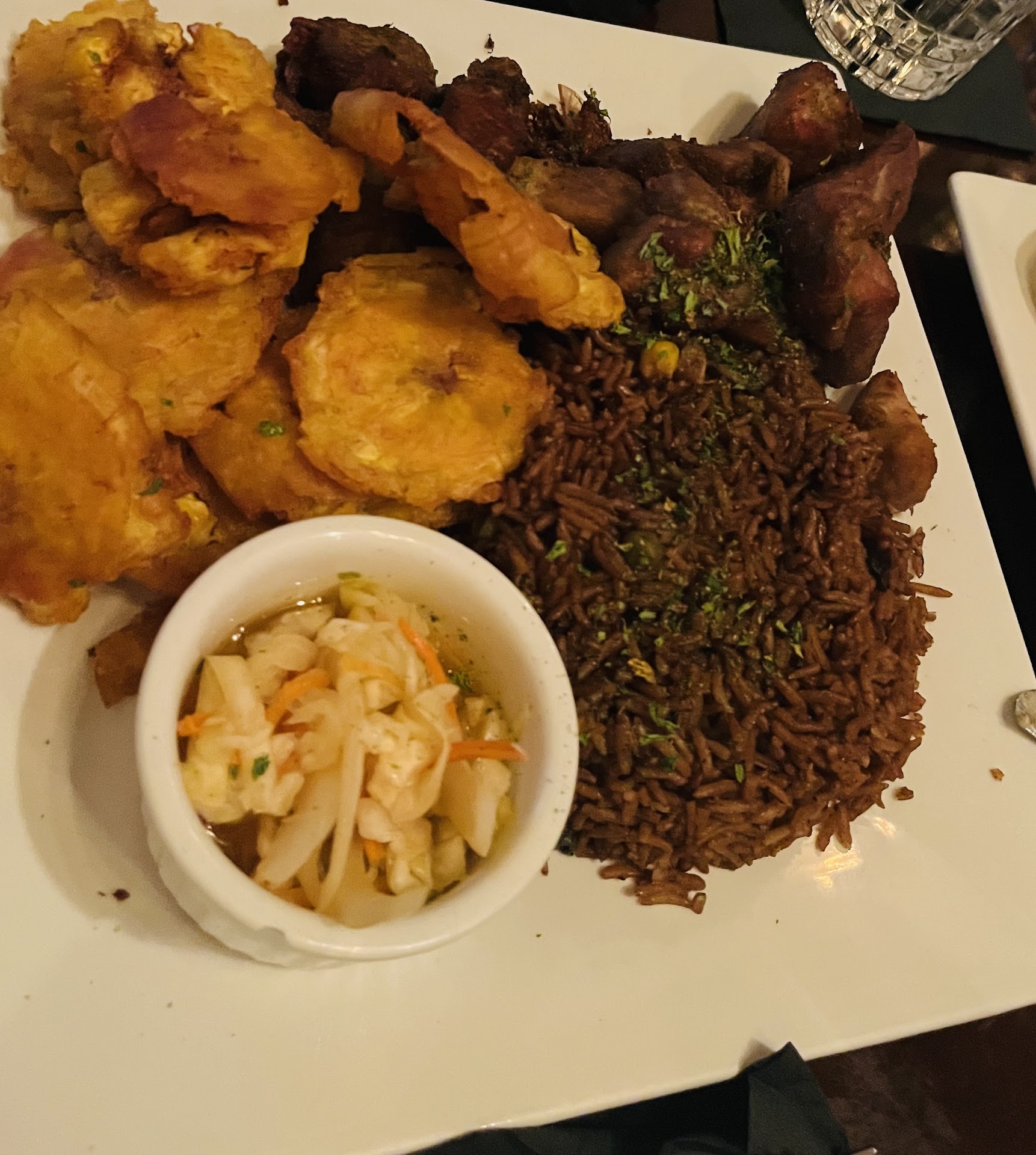 We thoroughly enjoyed ourselves. The food was exceptional, with more than healthy portion sizes. I got the roster pasta and added lamb. Those lamb chops were money. I surely did not expect whole lamb chops in the pasta. I thought there would be only pieces of lamb, but to my pleasant surprise... Another family member got the Griot and cannot stop raving about it. The other family member got the Orange Ginger Glazed Salmon. We all look forward to lunch today.