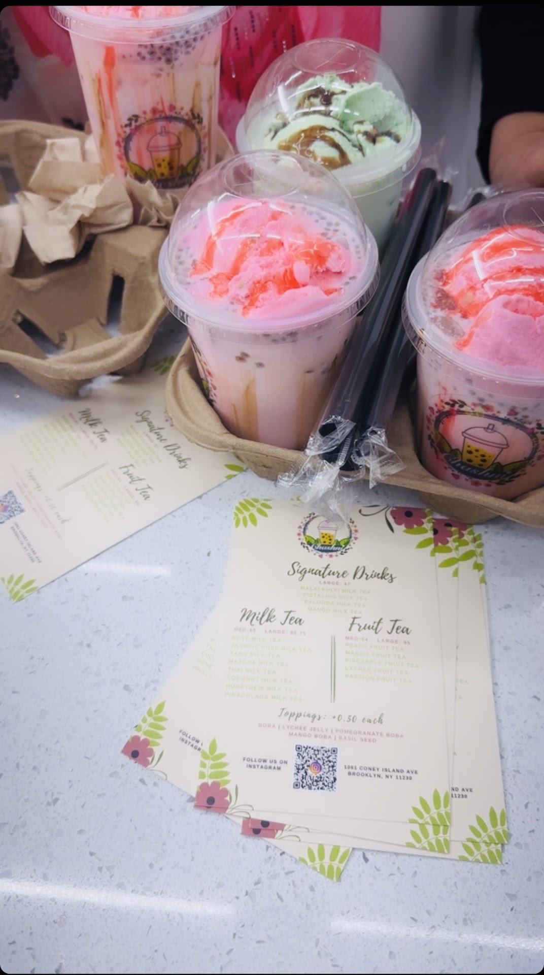 Read moreI never give a place a full five stars rating. So, I will never give them five stars for atmosphere, food, or service. But this place has broke that rule for me. I gave it full five stars mainly because the boba tastes really good. I got the strawberry boba. It was served very fast. It tasted amazing and the price wasn't that bad. They also have multiple various menu options like ice cream. The ice cream also tasted really amazing. They sell more. I'm pretty sure they also sell milkshakes. But regardless, service was amazing. The employees were very nice. They tried to do it as quick as possible. And overall, they definitely deserve tips. The boba tasted really good. It was really nice. And I honestly wish I got a larger size. The ice cream was also amazing. I wish I got in a few more scoops. But at the same time, I don't want to have spiderwebs in the wallet. So, yeah. But anyways, if you have time, if you live near, or if you're just passing by, I recommend you to highly check this out. I'm not seeing much bubble tea shops around the neighborhood. So, if you could, please at least check them out. And if you want, buy from them. They're...