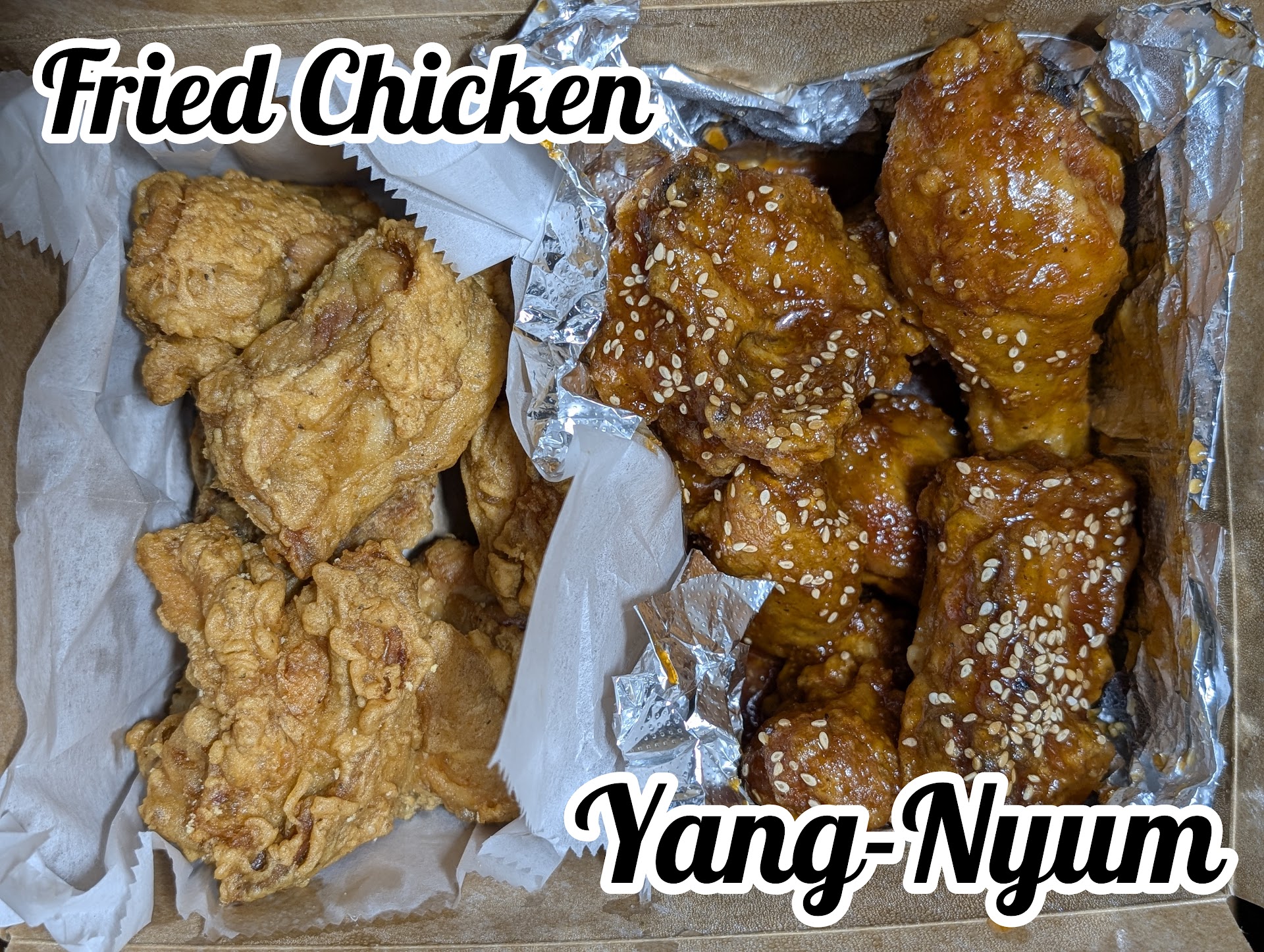 The Yang-Nyum is really just like a sweet and spicy sauce so it's a different style than the fried chicken on the menu. You can get both in their combo if you can't decide. Postmates lets you pick a sauce for the fried chicken but I doubt the kitchen can see it, I didn't get my sauce.