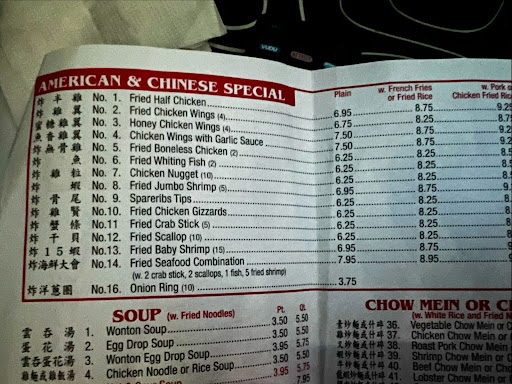 My family has been going here for years and years, fairly often too. Our friends always want to order from here when they visit. The people who run it are lovely, and the food is consistently delicious, with great portion sizes and lunch specials. Today, being an airhead, I forgot to order my usual S&S sauce side with my dish. Realized this once I got home and, already soaked to the bone, did not want to trek out again in the rain. I was going to resort to those little packets you get from BK, which are nice with nuggets but not so much a substitute for rice dishes. When I opened my food bag I realized that they had included S&S in my order. Happiness tenfold - TENFOLD I tell you. Back to the review. I've been to a lot of Chinese restaurants and takeout places since moving to NY, and we always -always -always end up going back here. Then we spend a minute or so discussing why we even bother going elsewhere, not that others aren't good but it's normally one or two dishes that we love, but then the others pale in comparison to China House. I strongly recommend the Yang Chow, S&S Chicken and Pork ribs (spare or regular). Also their cheese wontons cannot be beat and are a threat to my diet. I love you,...