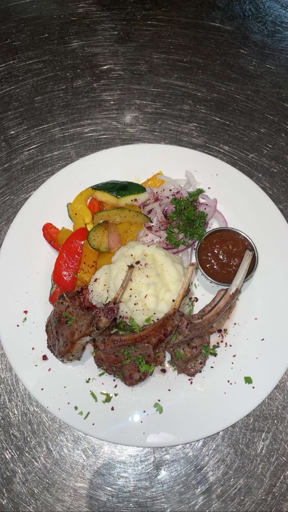 So we sat down. The girl that was servicing our table was nice and we decided to pick a sampler platter for four, which normally should be sufficient to feed 2 adults and 2 kids but this one was not to be. The sampler platter for four actually includes 4 kabobs, not 6 or 8 as one might have expected from a place like this but 4. 1 Chicken, 1 Lyulya, 4 lamb chops, and 1 lamb riblets (which basically have some fat but very little meat), So the platter which was basically the size of half of our table had that in meats and a mountain of french fries. I mean I love fries as the next guy but that is a side not the main course!