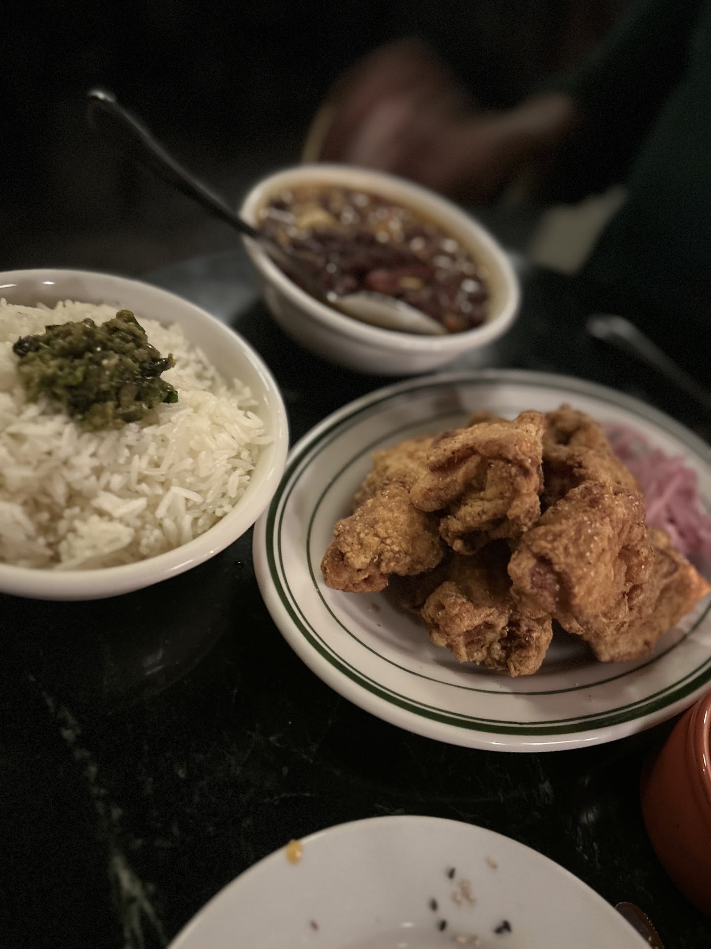 Read moreWe booked this place strictly off of seeing their viral Instagram post from @righteouseats and their affiliations with the Win Son restaurant across town. I thought Win Son was a 10/10 dining experience so of course I had high expectations. Service/Ambiance: We arrived as soon as they opened, and we were quickly seated in tables for two with stool type chairs it definitely was a tight squeeze as the place quickly filled up. There is really no where to place your coat if you’re sitting in this area unless you walked about 10 feet to the bar are where there was a hook on the wall. Those backless chairs quickly became an issue for my 6’2” frame. Our waitress Sharon was excellent! She was attentive and super friendly and helpful making food recommendations, etc and definitely the reason I am giving 4 stars instead of 3. Food: Food was mid for me. The toast tasted oily, the ribs were overcooked AND oily. You def needed that sauce but I wasn’t going to pay $7 for a sauce sampler. The once saving grace was the rice. It was flavorful and yummy and the chicken was moist and crispy as it should be. I probably won’t be visiting again and stick with Win Son...