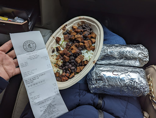 Read moreThis is right beside my job so sometimes after work I will go to this location.... Let me say that I'm basing this because I have been to many different Chipotle locations and this is probably one of the worst but I go there because they have a parking lot.. They are so scroogy with the ingredients..fillings Today was actually the final straw I am not going back here again when I got to the checkout the items that I bought were so small and light it was like I just bought 4 tacos instead of 4 meat burritos.