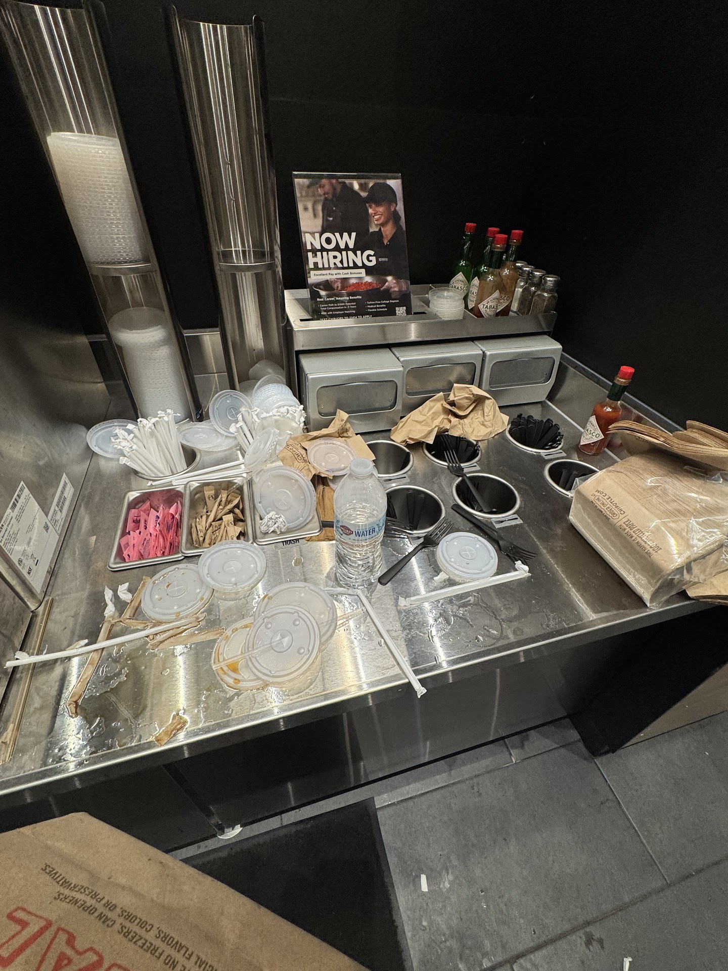 Read moreIs this place in the running for worst Chipotle in the country? Corporate needs to get this location together. 3 times, no pickup order online is available. One of the times, I go to the location and told "we are closed come back in an hour". No explanation. Worst of it all, completely dirty EVERYTIME I've been in there. Garbage all over the tables and floor, never ice in the machine. You dont have someone who does simple clean up of the place? I dont remember last time I've been into any food related restraunt in the last 10 years that looked like this place. Someone please see these reviews and get whoever is running this place...