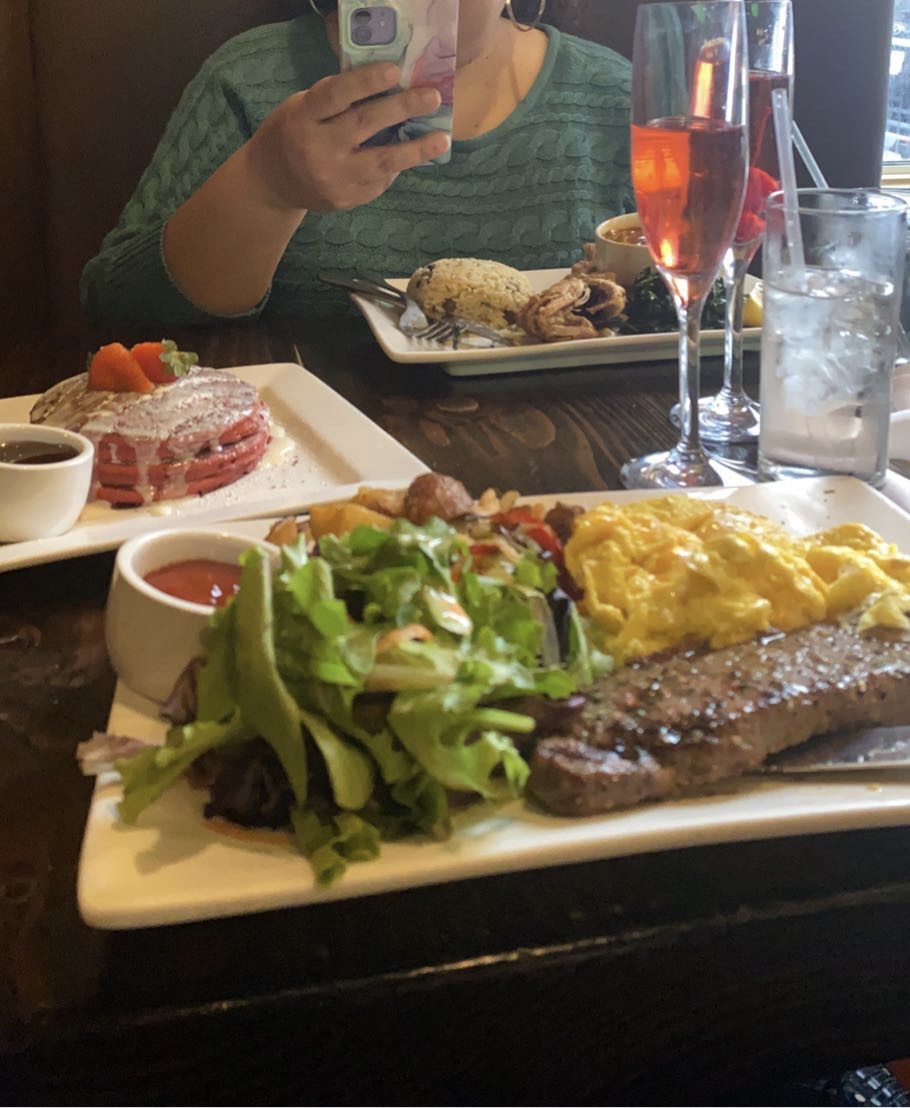 Read moreVisited this location years ago when I was younger with family and didnât quite remember the experience so I decided to have a brunch date with my sister in law for âmommy time out.â Public street parking is available for out of state commuters and if parking is scarce they do have a parking garage just up the block. When we arrived we did RSVP for the dinning room and was able to get sat immediately (they offer a 15 minute grace period for late arrivals and you can call to touch base if youâre running a bit longer). The dinning rooms aroma was of chocolate scent and the vibe was very relaxing. We weâre offered glasses of water and then our waiter introduced himself. He was a very handsome Ethiopian king named Woodie ;who made sure our unlimited Bellinisâ were never unaccounted for. Brunch and Dinner are served all day which made the experience even more enjoyable as we didnât have to stress over menu options. As a starter we had seafood croquettes and for our entrees I had the steak, eggs and potatoes with a side of their signature red velvet pancakes and my sister in law had the red snapper, rice and beans, kale and sautĂ©ed peppers. The food was absolutely amazing, flavor in every bite, and completely filling. As far as pricing it is moderate but pricing varies on your order and can get a tad bit expensive. On the website it stated that gratuity was added for tables of 4 or more but 18% gratuity was on our bill. Our check total for 2 people 7 items was $250. Unlimited Drinks are $30/person which is NOT bad at all and it was all about the experience. I would highly recommend this place as it is a black owned business, if you love soul food, and overall looking for a brunch spot where the drinks put you on your behind⊠this is the place for you. Small little dislikes: my water glass had orange juice residue in it (but was replaced with a clean glass, the croquettes were a tad bit dry (still delicious w/ spicy dipping sauce), restrooms werenât as clean as I expected, and we seen one small roach crawling on the wall during the end of...