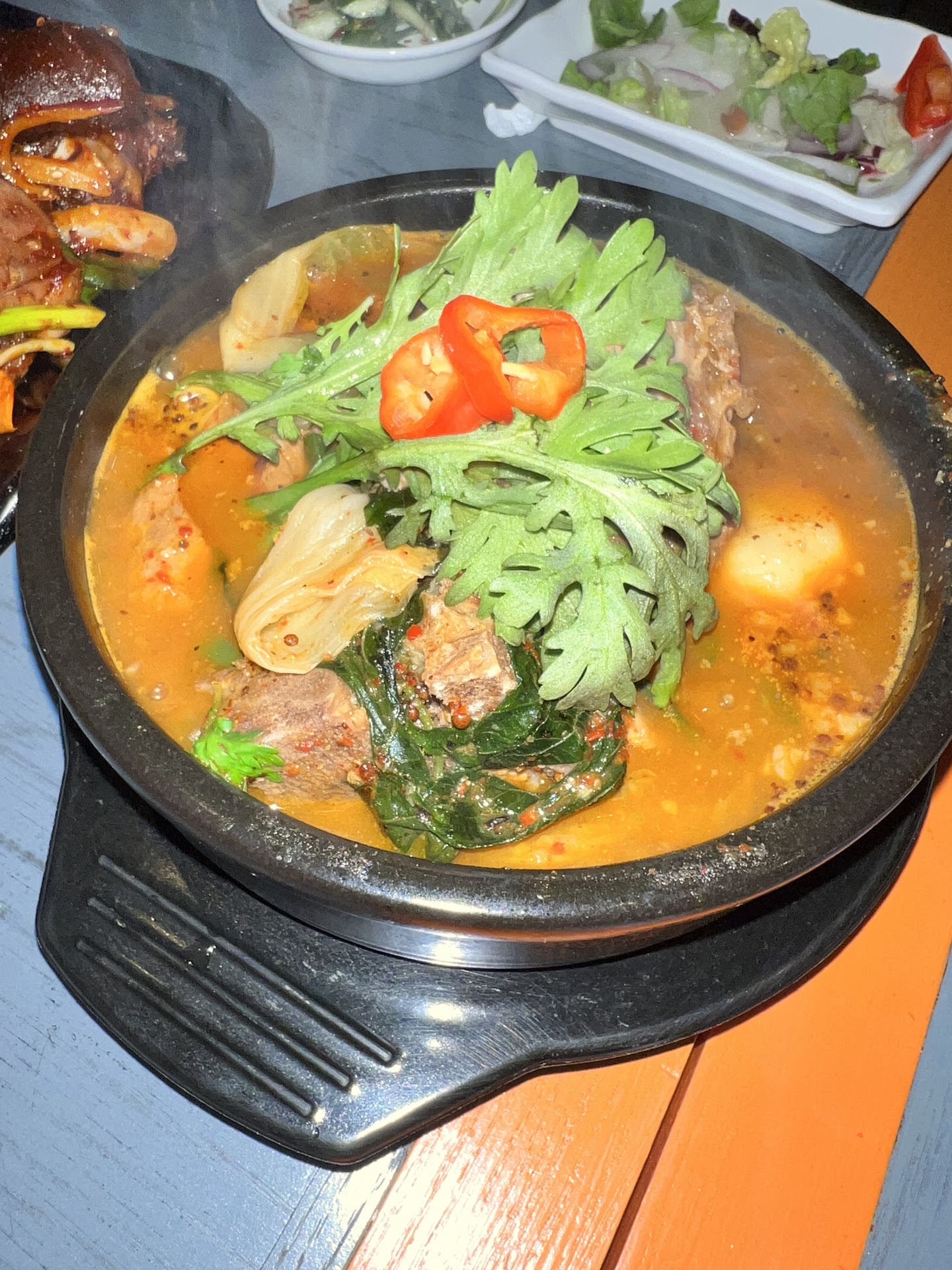 Being in the mood for Korean soup, wanted to checkout this place for BuDaeJjiGae. Not sure if they recently changed their signage, but the signage looked new and caught my eye to stop by. The place seemed very slow during my afternoon visit. It was in an odd time in-between lunch and dinner. Ordered the BuDaeJjiGae(army soup). My initial impression of the side dish brought out was very good, tasted fresh and well made. The server felt like the owner and was soft spoken but kind. The main dish also looked and tasted fresh and made with quality ingredients. But after taking few sips of the soup, it felt a bit off from what I was expecting this soup to have tasted like. Donât get me wrong, I think there was a lot of care preparing the soup and its ingredientsâ quality. It was a decent soup but just didnât have the distinct taste of the type of soup I was expecting. It was a bit disappointing that I didnât get to try any other dishes but the fact the restaurant sells itself as a BuDaeJjiGae restaurant, was expecting the soup I tried to have a bit more distinct taste associated with this particular type of soup. Perhaps the restaurant was still in its early infancy and needed more time to refine its taste. Overall, I would not recommend this restaurant for BuDaeJjiGae in particular, but good for a good meal with quality...