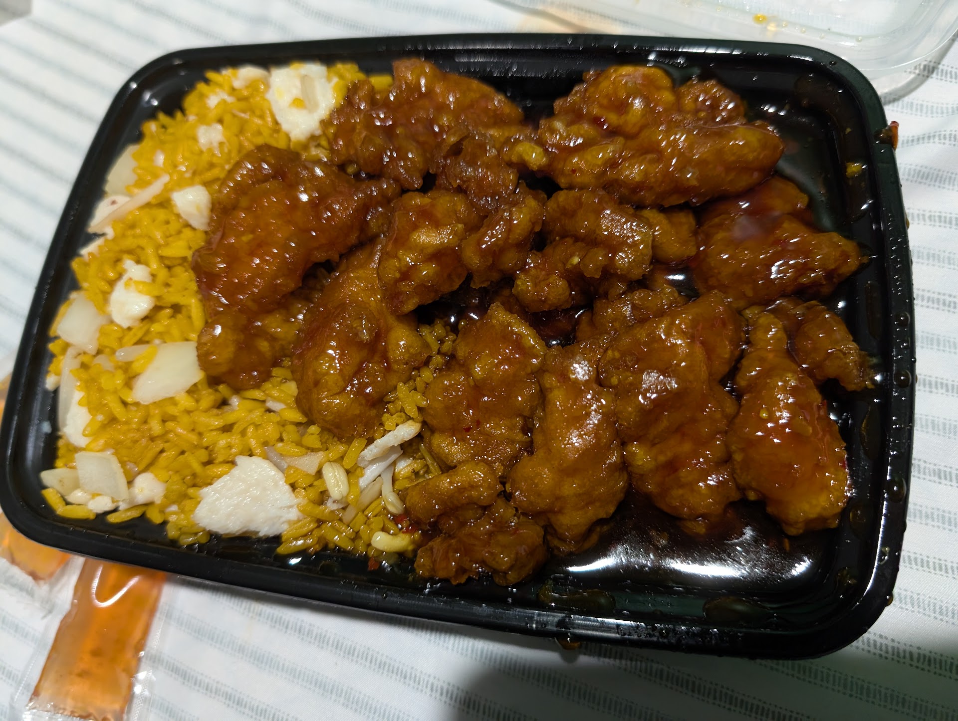 I ordered a sweet and sour chicken combo. The chicken was neither sweet nor sour since there was no sauce ATALL, and there was also no CHICKEN! Literally just got chunks of fried dough-.-