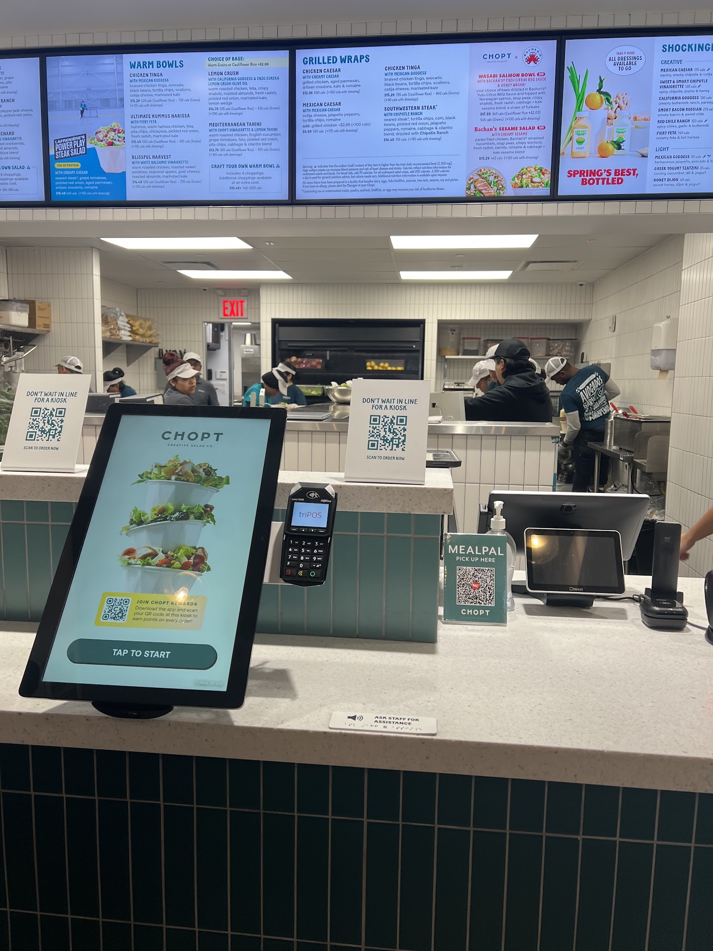 Read moreChopt team has good work ethic in this location. They’re multiple companies in the near vicinity which depend on them, with sometimes 50-100 people ordering at a time. Sometimes with such large amount of orders, they can run a few minutes behind, but they are organized and work to meet the demand. They show which orders are in progress on mobile and large screen inside.
