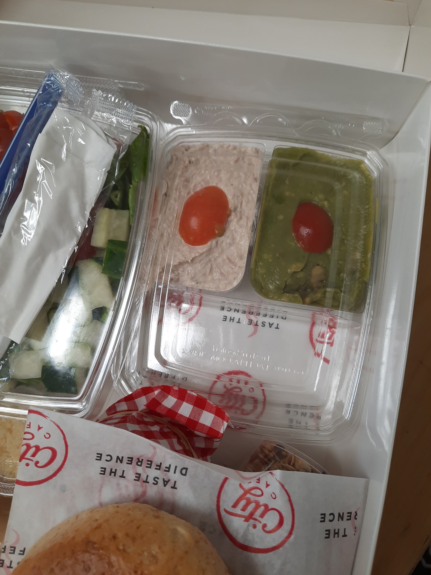 Nice modern decor, food is at best simple if not tasteless, coffee is horrible, service is terrible there are barely three people in the store all of them always in a bad mood especially the person taking the orders, and the pizza guy they all look like they hate their job and every customer is just a pain for them, and I had to wait 25 minutes to get a pizza. The owner is never there just pops in from time to time but there's no one to talk to if you have anything to complain. Update: I ordered for lunch a portion fettuccine alfredo disgusting is not even describing how horrible it was, it's all dried out, no cream whatsoever, it looks like margarine or something disgusting oozing in the plat what a crazy rip off. Update #2: just received this nice breakfast package which costs about $40 (on Uber eats $54) there is no way in the world this can be justified, let's start with the avocado you can see on the color that it's not fresh and it's unappetizing, a bagel that's hard, definitely not fresh, you see in the spreads container one compartment is empty (of course the biggest one), how smart do you have to be that you don't send a gift package with empty compartments, or find a different container or just fill it up with letters or tomatoes or anything cheap, who wants to receive a package where it looks like there's something missing, now as a cafe which I assume people order from all the time how can you not realize that nobody eats empty bagels, give along some butter or cream cheese or even jelly, something to smear on, spreads are always a bonus but basics is a must. How they justified asking such a swollen price is beyond understanding.
