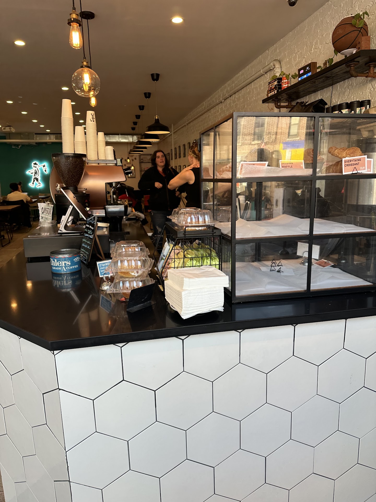 Read moreSeveral days ago, a friend and I decided to check this coffee shop out on the recommendation of a friend. We entered the shop which was fairly empty and we were the only patrons waiting to be served. We were not greeted by the staff - in fact the two employees on shift made a conscious effort to move away from the register and have a conversation amongst themselves (photo below.) My friend and I were reviewing the menu and discussing what we might order so initially it wasn’t an issue that we weren’t being served or even acknowledged. After standing near the register for several minutes, and an attempt to ask a question to the employee that was outright ignored, we decided to spend our money at one of the many other fantastic Bay Ridge coffee shops that actually wants business. As we were leaving the shop, another man entered and was immediately greeted and serviced by the employees. This incensed me and I decided to return to take some additional photos to show just how empty the shop was and how there was no excuse for the employees to blatantly ignore us completely other than perhaps racism or just plain hipster judgement. This place is trash based on the complete lack of customer service and clique-ish...