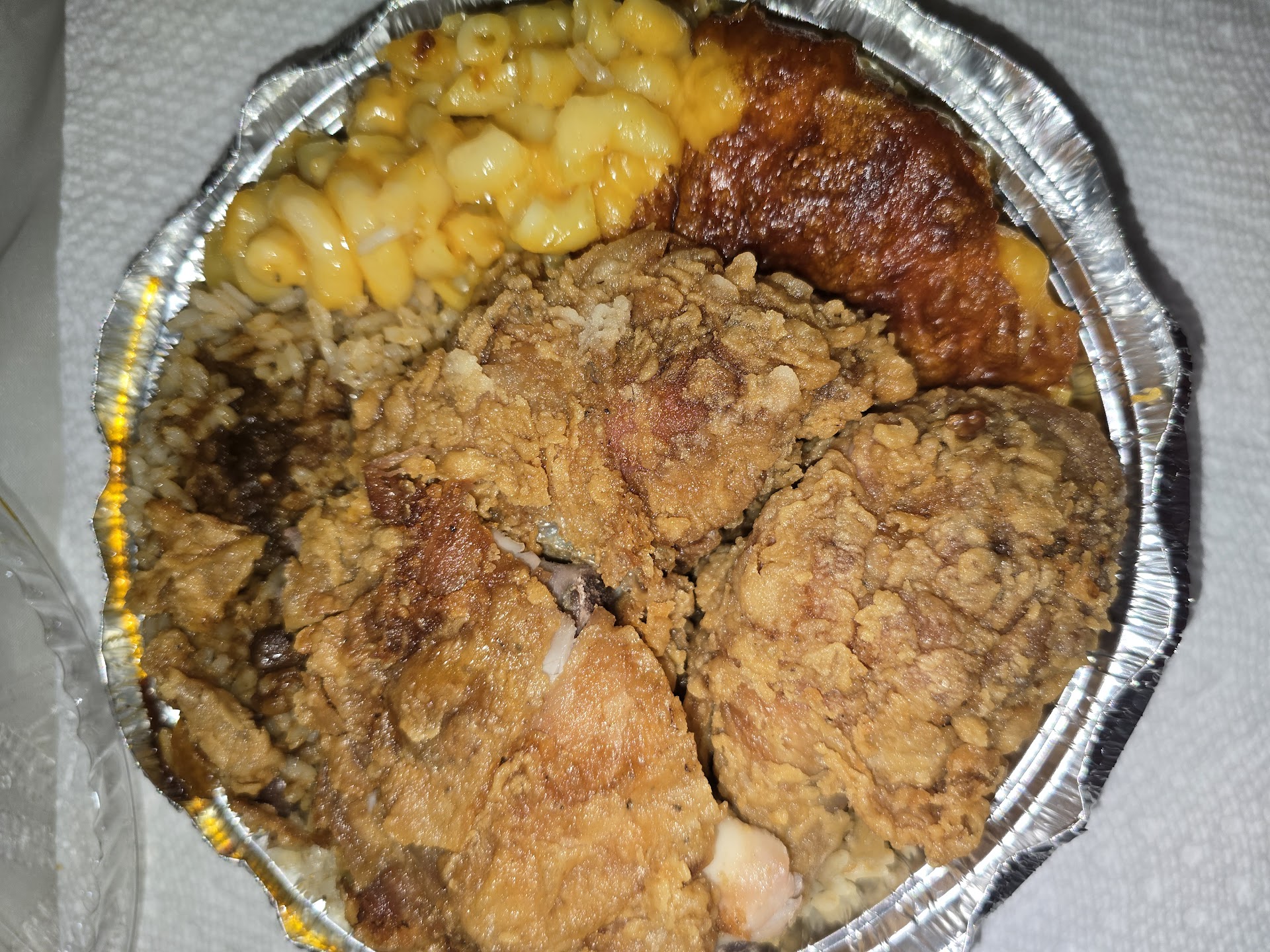 Sidenote: I actually wanted to try the fried chicken but what always turns me away from Jamaican takeout restaurants is the mere fact that almost all only serves leg and thigh. Not a big fan of thigh for several reasons. I think we should step away from that and start serving other parts of the chicken and not only "chicken parts". Loved the flavor just not the fats on my goat, I ate some and threw the rest out. I was truly...