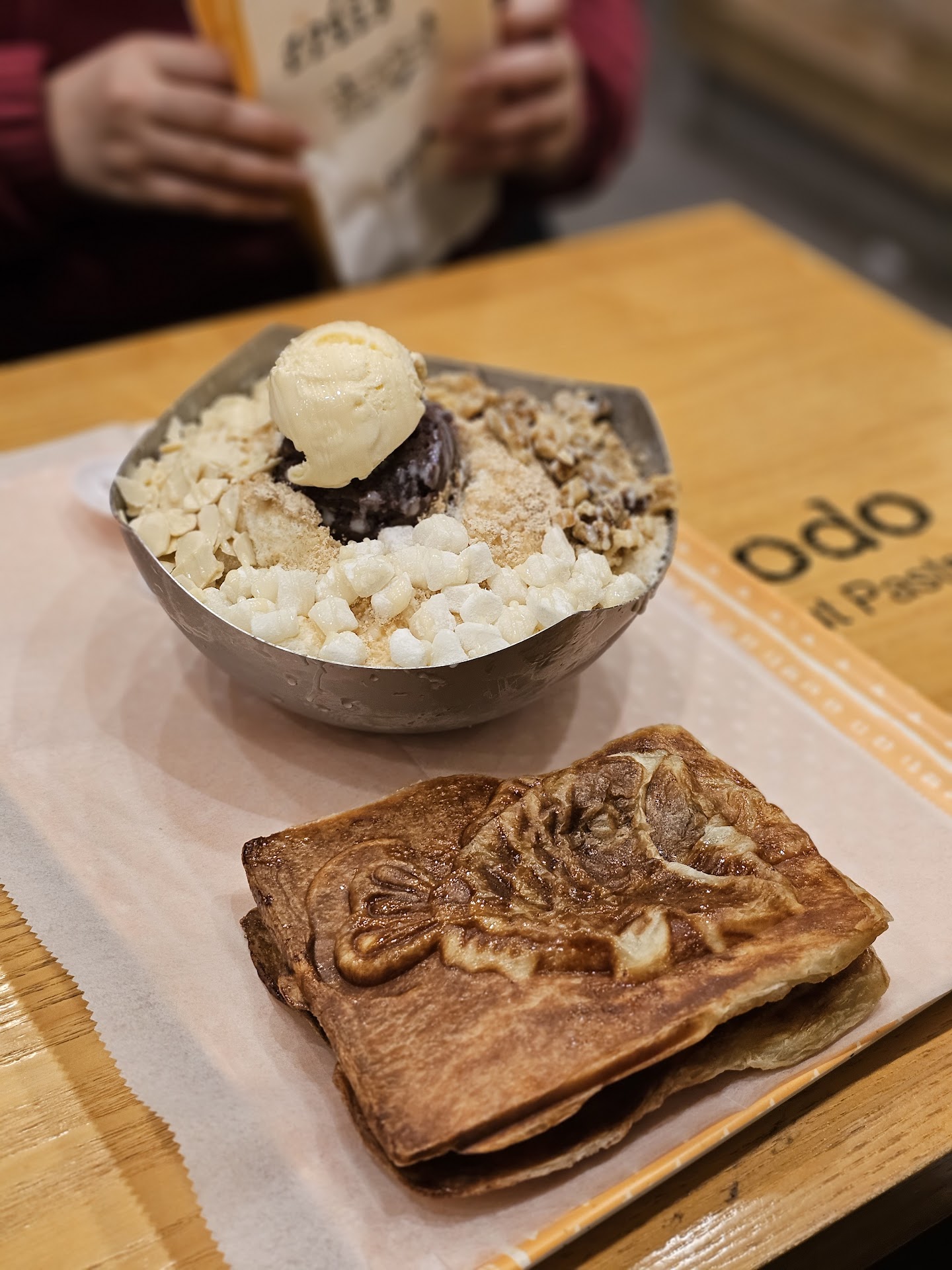 Read moreThe food is pretty good, I liked the Coco Original shaved ice with some extra condensed milk. There was a mix up with our taiyaki order, but it was still good. We ordered the mochi taiyaki, which imo is definitely better than the Nutella one we were accidentally given first. The shaved ice felt overpriced for what it was: we had to pay $1.50 extra for condensed milk, it only came with vanilla ice cream, soybean powder and red bean.