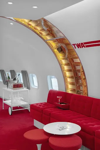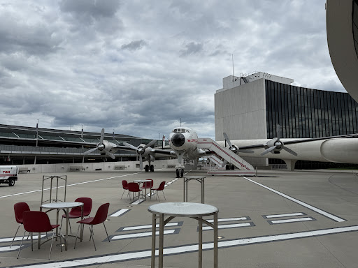 Let it be known, the TWA terminal by Eero Saarinen is a masterpiece of Midcentury architecture. Just outside of the terminal building is this cute little plane lovingly named “Connie”. Inside Connie is where this cocktail bar is, and sadly where the experience dies.