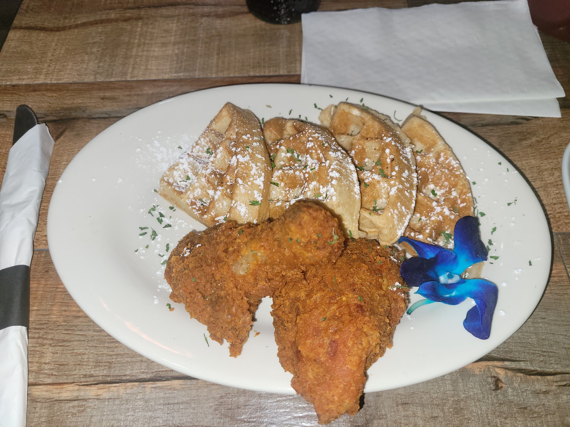 Ā Ā Ā Read moreI went there for the 1st time to have brunch with a good friend yesterday. They had a Dj. He was playing good music. The Chicken and Waffles were really good. The Rum Punch pitcher($45) was warm. I don't really understand why it was warm. We had to ask for a cup of ice. More servers are needed. It was a long wait to get the server's attention because they were stretched thin. The servers are really nice and knowledgeable on the menu. Tip in cash so it can go directly to the server. It was hot in the restaurant as well. Please close all doors and turn on the air conditioner. I had to use my portable fan. Please bring ice cold water when every customer sits at a table. There was a "service charge" on the bill, and that is unacceptable. This is not Uber Eats. Hookah is $45 Cash Only and can only be smoked outside in the back of the restaurant. The hookah was really nice and lasted for over an hour plus, get "Love Sixty" minty & fruity!! The back of the restaurant has no fan, no speaker, no bamboo smoke, or "off spray" to keep the mosquitoes away. I have a lot of mosquitoe bites on my legs. Smoke your hookah at home! They serve water for free but will also bring you a big blue glass bottle of "Still" water and charge you $10.00 w/ a service charge. 1 big bathroom stall towards the back restaurant. It doesn't have anywhere to place any items. Let's make paying customer experiences...