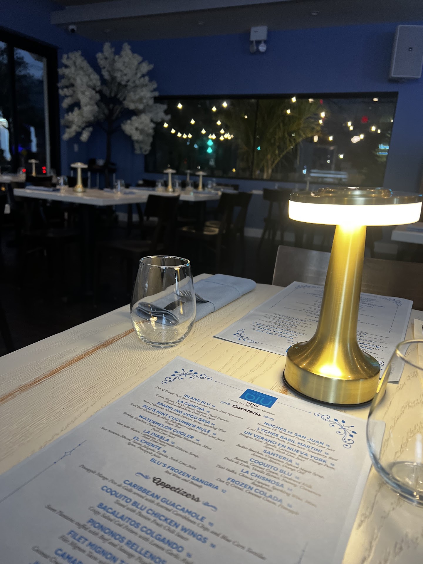 Edit: I see the manager got as salty as the uncooked bacalaitos of which I sent the full plate back after cutting 2 open AND is LYING on top of it. My date took a few bites of his WARM calamari & sent the entire thing back without even wanting a replacement, he was so disgusted then waited as I cut into my second order of bacalaitos & laughed when he saw it was yet again uncooked. How do you get mad about what is a clear complaint? As a Puerto Rican from Bushwick, Brooklyn raised on them, I don't need an explanation as to how they're made & the restaurant whether "Latino themed" or not, the recipe & preparation for traditional dishes should remain the same & AT THE VERY LEAST COOKED FULLY THROUGH! It wasn't the fish that wasn't cooked, IT WAS THE BATTER! or as you call it "the dough". As far as holiday celebrations & noise, it's a given which is why a simple table change was requested, honored & appreciated. What I mentioned was the COMBINATION of the two; the music AND the holiday party together. If you expect a patron to NOT mention having to ask to be moved after being seated DIRECTLY next to a large party as a couple, then obviously you miss alot of things hence your bitter & unprofessional reply. As far as other restaurant recommendations, we frequent a variety several times a week from white tablecloth/ quiet ambience to checkerboard tablecloth &/or with live bands, Salsa or otherwise before & after Coquito Blu. I'm no stranger to noise.