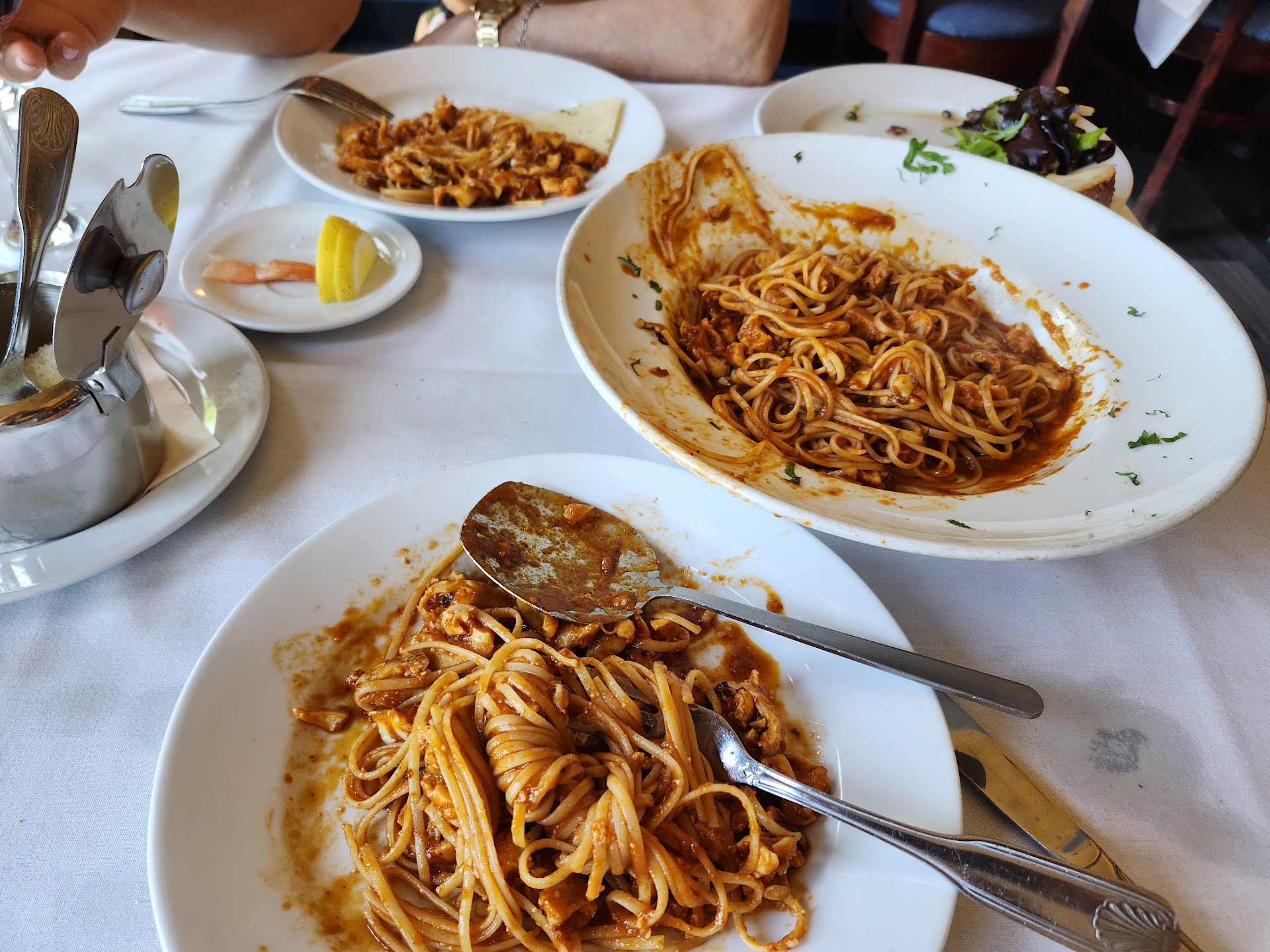 My brother ordered linguine with clams in RED sauce. They gave him white sauce. OK no problem they take it back and fix it. Literally 4 mins later they bring out a plate and the sauce is ORANGE. Not RED... O-R-A-N-G-E. It looked gross and my brother was gagging just looking at it. He couldn't even eat it. It's as if they just poured red sauce over what was already there. There's no way they fired up a new plate of pasta in Literally 4 mins. And for the prices they charge, that is pretty embarrassing.