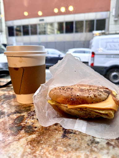 I was hoping for at least good coffee, but alas. The coffee tasted burned and acrid. $2-3 is pretty standard for plain black coffee, and it's my go to order in NYC, but this was truly bad coffee. The croissant was heated on a griddle (how long was it at room temp before that??) and the American cheese was still unmelted and cold in spots, while the croissant was flattened to an inch thick and burned. Burned but cold lol. My order was about $7.50 for a 16-oz coffee and egg and...