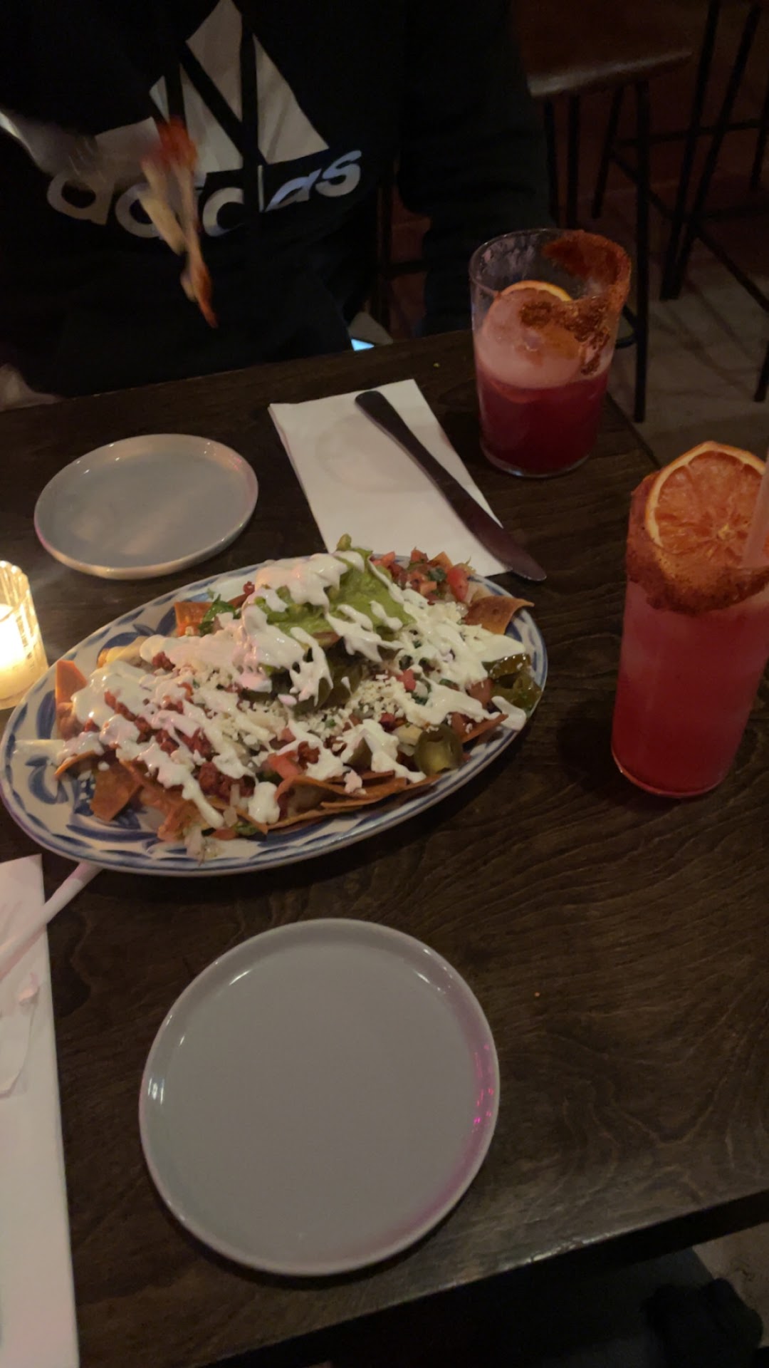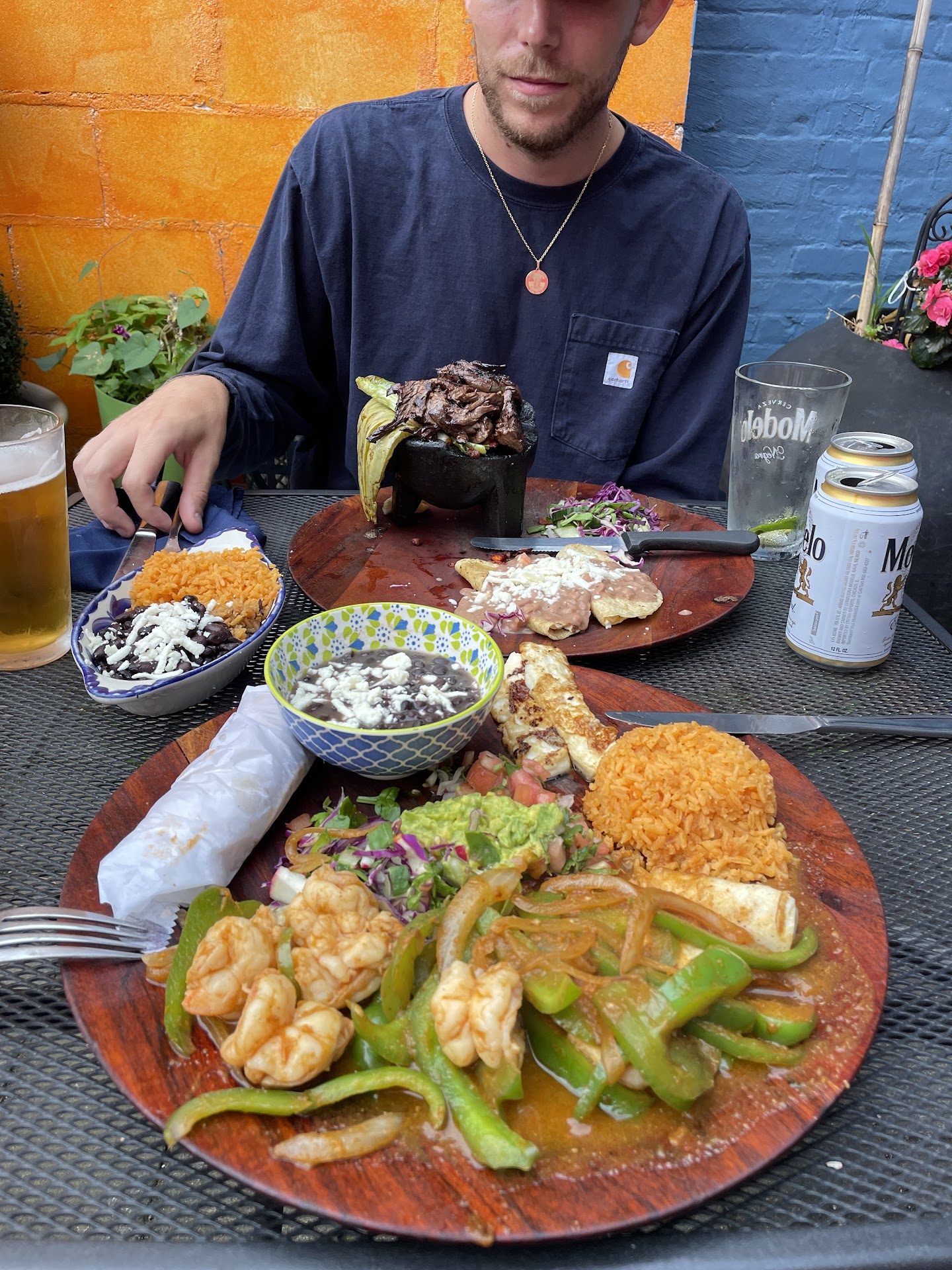 We alternate between aquas frescas (watermelon, tamarind, etc.) which are terrific, and a nice selection of typical Mexican drinks with alcohol.