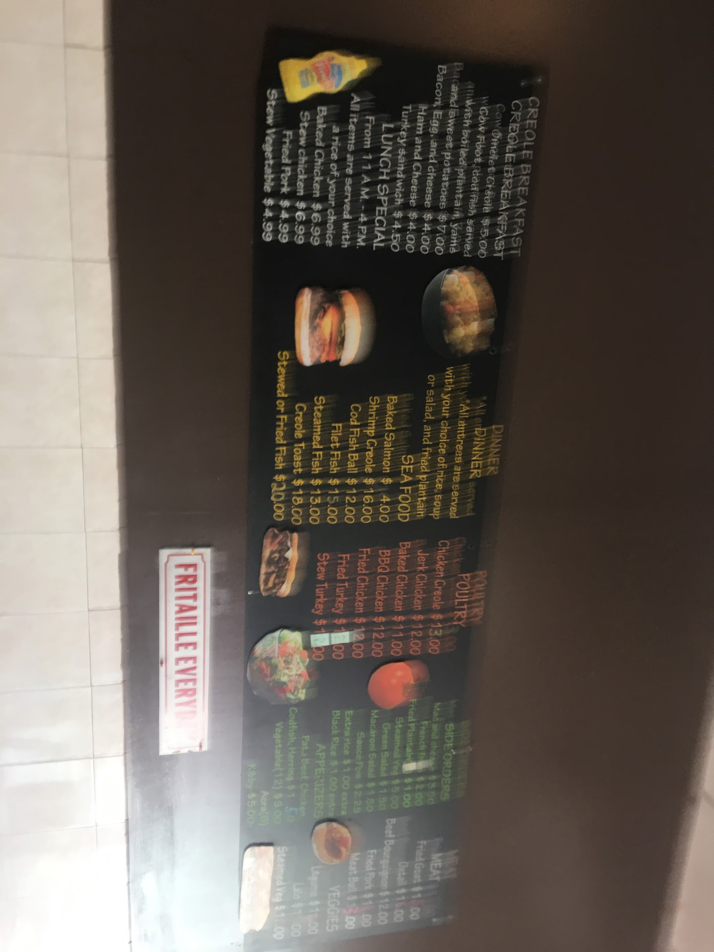 Honestly this place is one of the worst haitian spot I have been too. This was the second time my husband bought for them. The first time my husband bought from them they lied about what's in their food. I get it food is expensive but charged me for what I am paying for. I hate to be deceived. Now this time around the same thing he ordered boulette just to find out it was just potatoes and saltfish fritters When serving boulette specify what it truly is. We also got legumes they let my husband know that it's with beef but it's liver meat. This was not ok. Bad services. The restaurant needs...