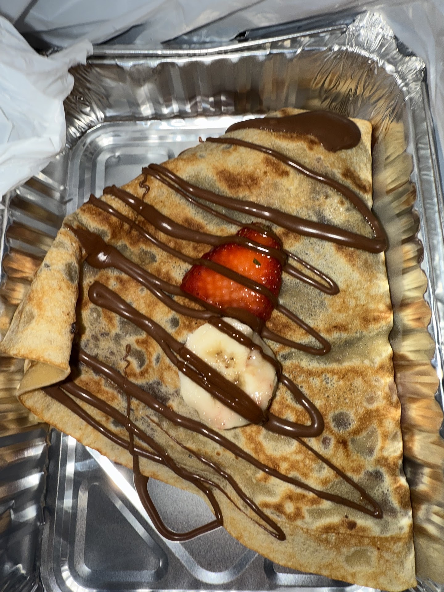 Read moreI was really excited to see a crepe place in the neighborhood. As much as I like Chinese dessert shops, we didn't need another. It's a small place with a few tables. I was picturing a quiet cozy atmosphere but it wasn't the case; there was a football game shown on a mounted TV and we can hear other customers' conversations since we're all sitting so close. The employees were friendly and left us to ponder a while on our choices. Now onto the food: the menu offered both sweet and savory crepes and drinks as well. My sister and I each ordered a sweet crepe and flavored lattes at the front. The total was about $28, which is surprisingly high for South BK. Everything was delicious but I don't think it can justify the cost. I suppose if I am craving crepes and don't want to venture too far, I might return. Still, I think the prices are not fit for this...