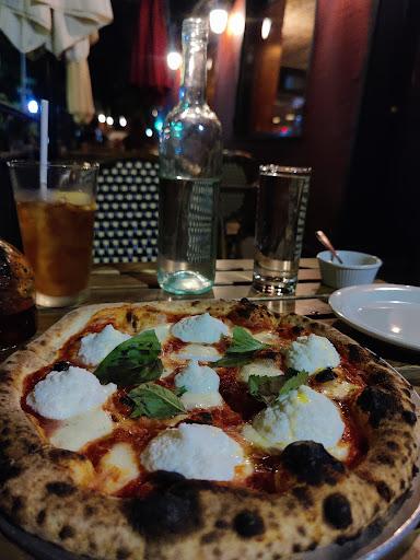 The food, for tonight's dinner it was Margarita D.O P. Which. Is a step up from your traditional margarita that includes fresh burrata , pecorino and basil. Hands down a delicious addon to the classic. It would be to easy to eat the whole pie... But alas i peaked at the dessert and had to save room.