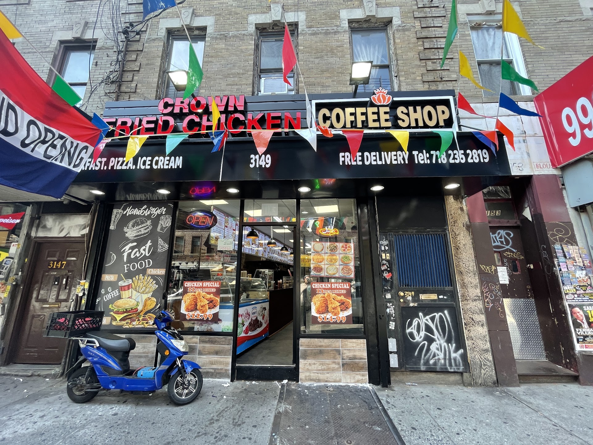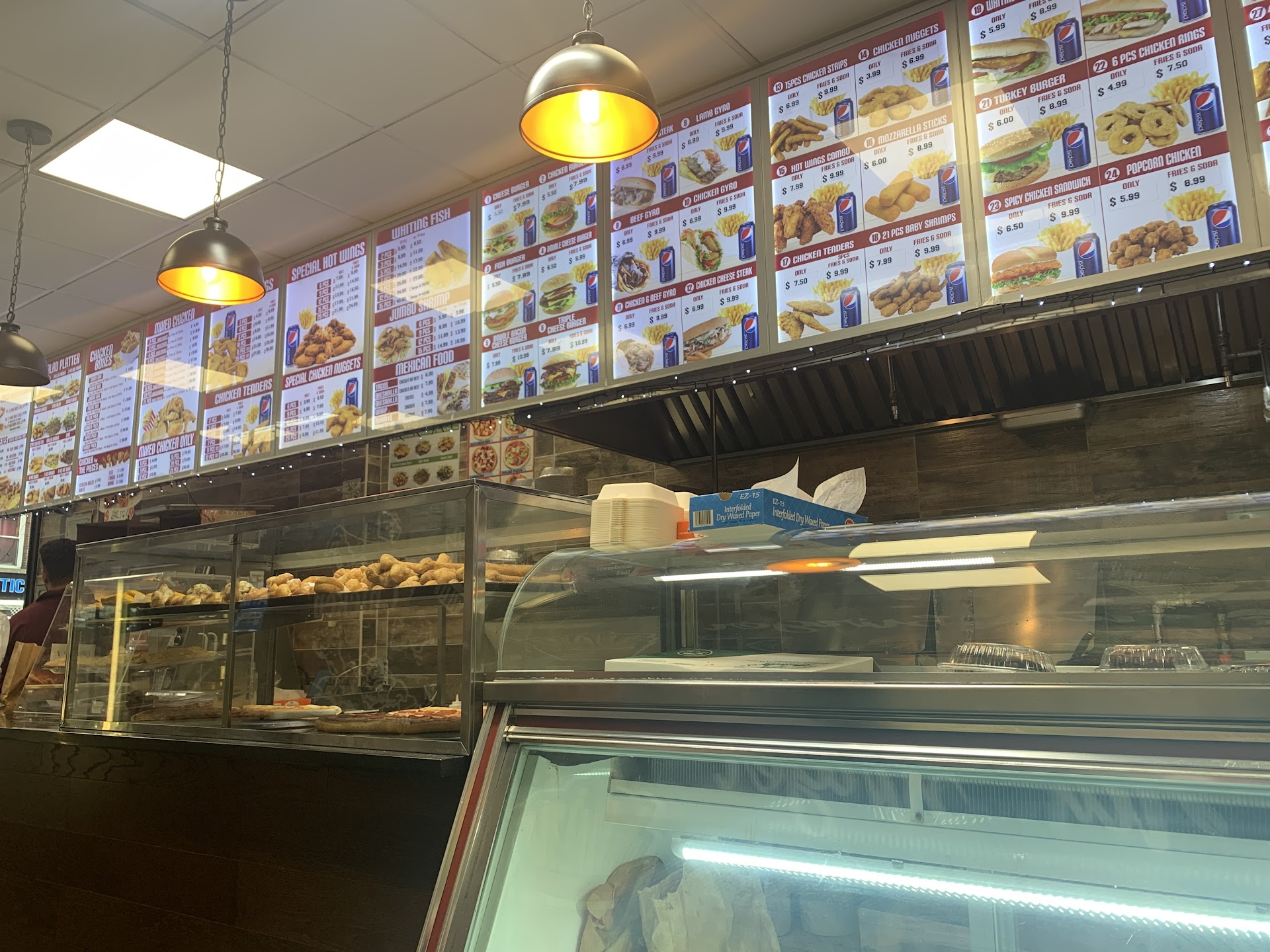 The pizza is good. For a buck u can't beat it. Fries are great but chicken is a bit too greasy & dry many times. I don't b like left over chicken or chicken that been sitting there over ngt. Get it fresh or don't buy. The lack in customer svc. Untrained & because of lack of eng. Understanding they fail to get orders rgt. Only 1 person has it on point there. Horrible delivery time. Already 45 to an hr wait. I live e bl. From them. If uv are l8te 4ur pie they sell it 2someone else. They charge $6. Just for delivery for lousy svc & messed up orders. They need 2 wear later gloves when making the foods or serving the public....