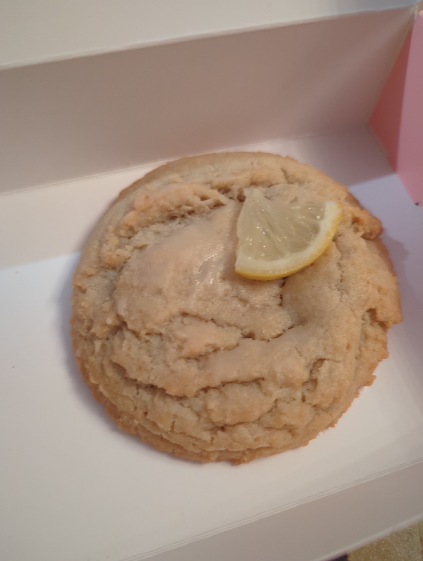 For reference I added a pic of the lemon glaze cookie and what it's supposed to look like. I asked them if they could remake it and two different employees told me that's just how they make it there. Also added a screenshot of my "pink status" in the app to show the stupid number of cookies I have ordered here for some...