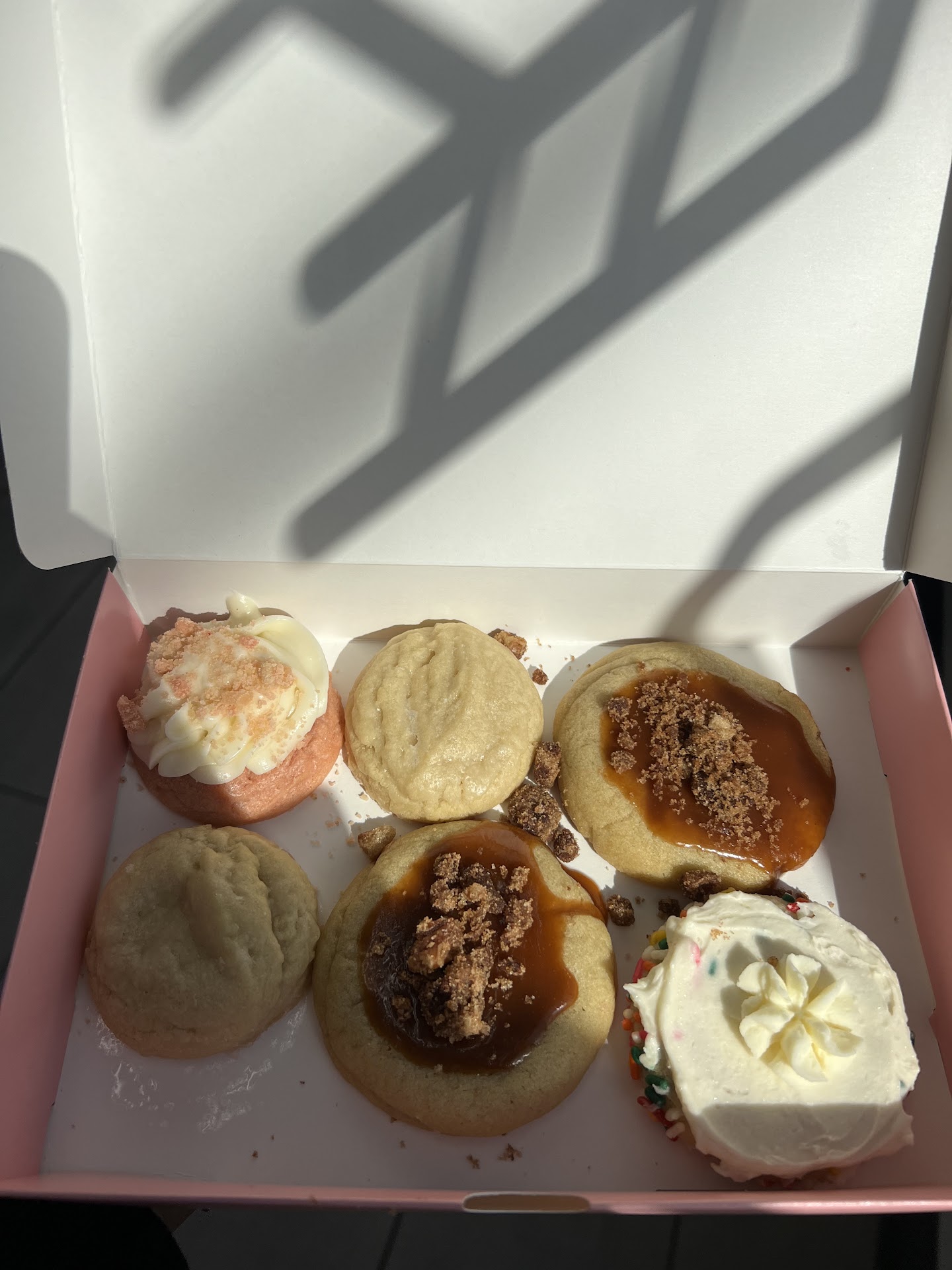 I have tried an embarrassing number of cookies by getting 4 every week since the week after the place opened and they are definitely slipping. I have gotten cookies with less and less glaze or frosting/toppings over time and now they barely give you anything. Some of the cookies look nothing like other locations or on the app; the lemon glaze cookie had so little glaze you couldn't taste it, and this week's berries and cream had a hilariously small amount of berries and cream on top.