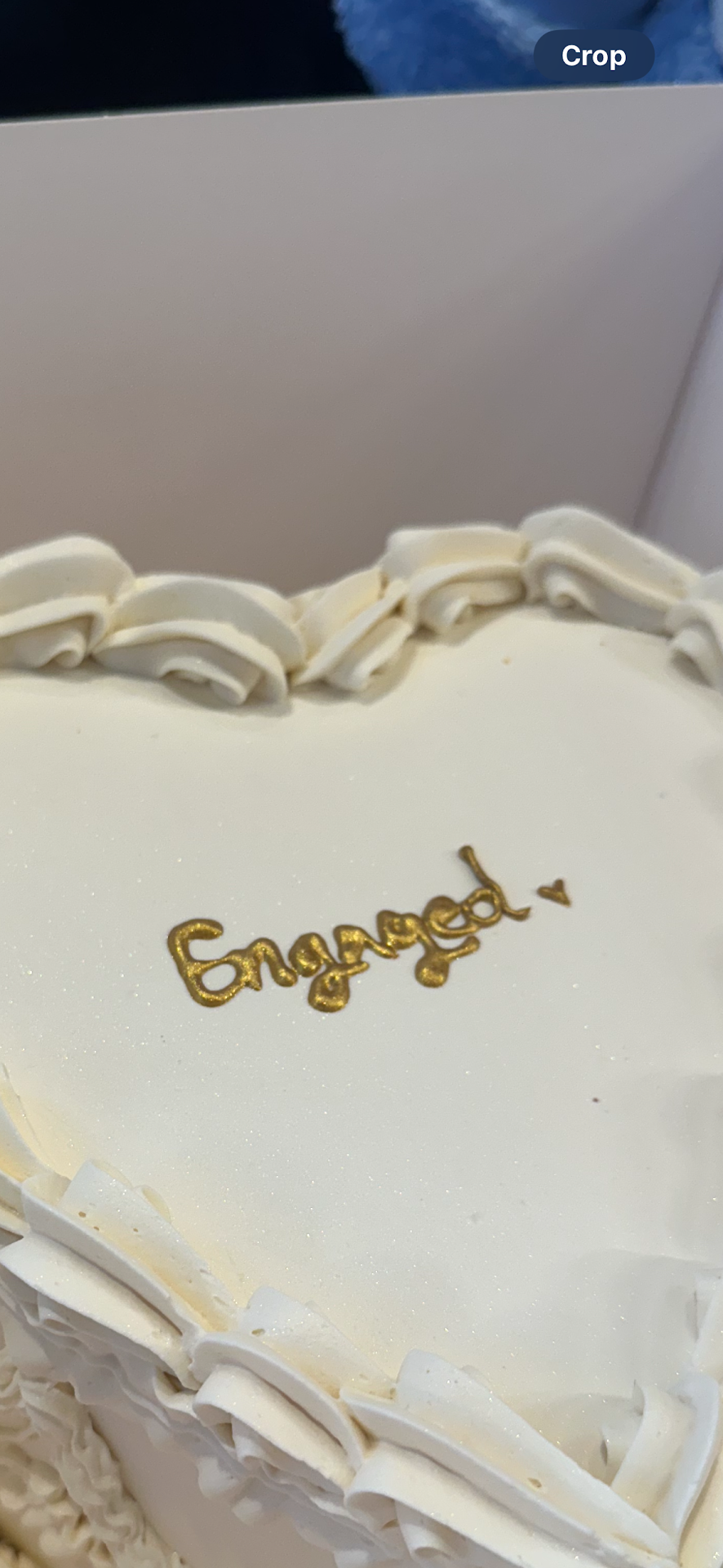 2 hours later we go back to pick up the cake, they redid the lettering and wrote the word engaged in white and then attempted to trace over it with another gold icing (that ended up looking like cheerios) after I specifically requested them to NOT attempt any more of the gold. I was very upset as they clearly were not listening to any of the specific instructions I was asking for & the cake did not turn out how I was expecting it to.