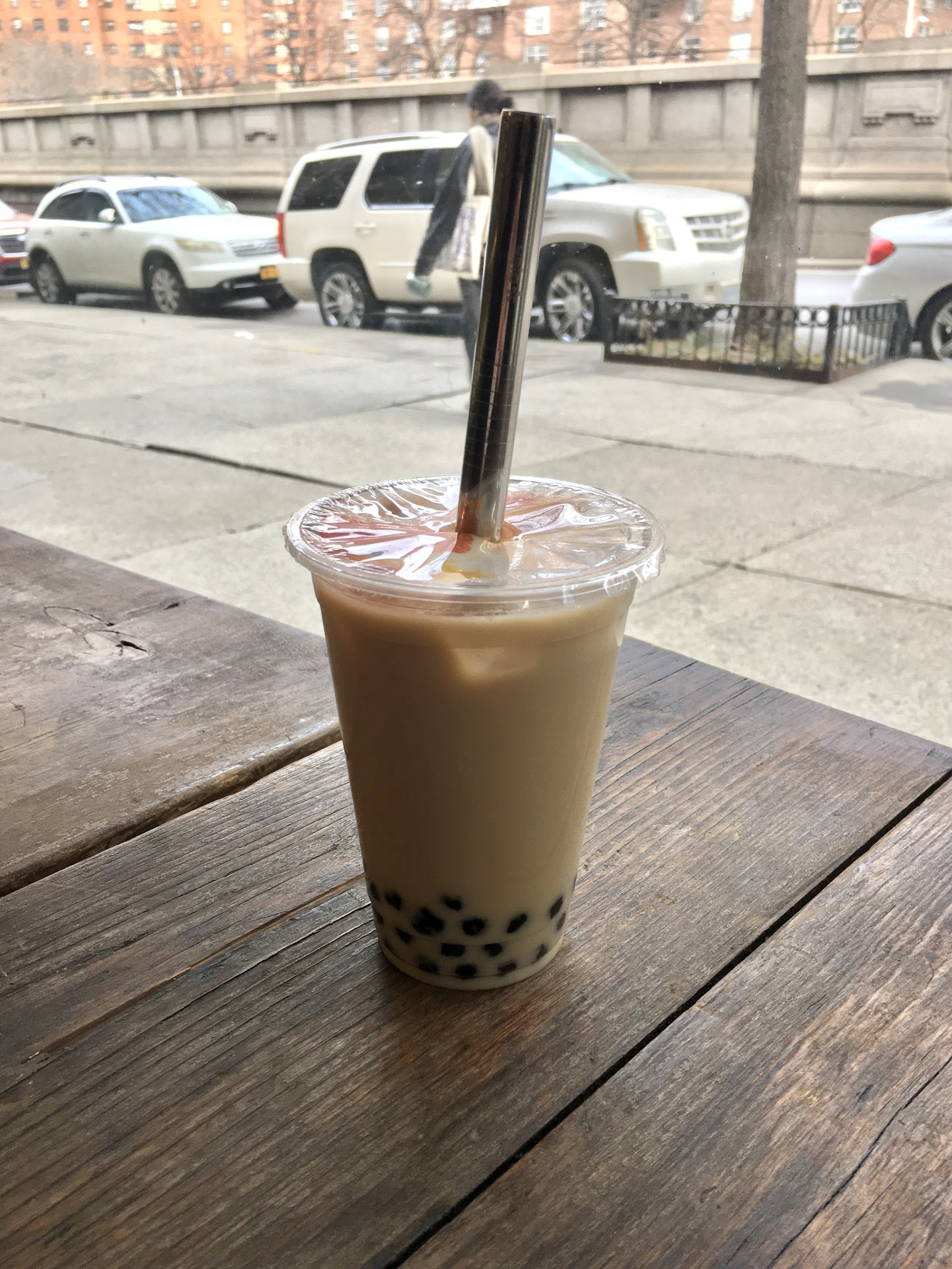Small place for tea (bubble tea or just straight tea) and desserts. Just two tables and not much standing room. I just got bubble tea but was really tempted by the dessert display. I had a lavender black milk tea with pearls. They had just run out of pearls and had started cooking a new batch, so I had to wait about 5 minutes for the pearls to be ready. I would have liked it if the tea was a little stronger, but it was good tea. I liked that the lavender black tea is actually made with a lavender black tea instead of a black tea with lavender syrup. For my taste the pearls also could’ve been a little softer, but they weren’t bad at all. It was a nice and simple, tea-forward bubble tea. The barista was...