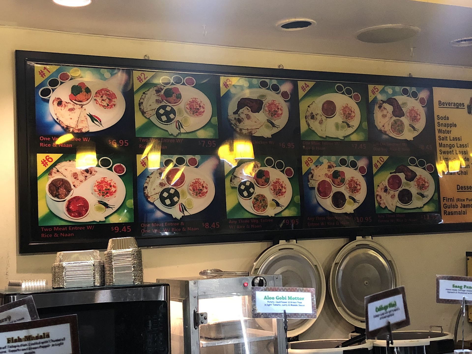 Went there with my friends.Out of everything Chicken Tikka Masala kind of satisfied us. According to the online menu, I asked the person who was handling the register âMay I please have the menu?â He said âThatâs the menu on of the wall and all the food right front of you?â Me- I was shocked but anyway we ordered from what he showed us. It was a big disappointment for all of us. Because according to the review from the people, they had some good foods we wanted to try out. However, It wasnât like what we expected. Also, the place is really unorganized and needs a strong management to keep the store clean and organized. When we entered the restaurant it was a mess like all wind from outside went inside of the restaurant and that wasnât welcoming at all lol. Even tho we went in to try out anyway. So we ordered what the person showed us. It was like a combo- for example, Two entreeâs with rice and nan. the we had are -