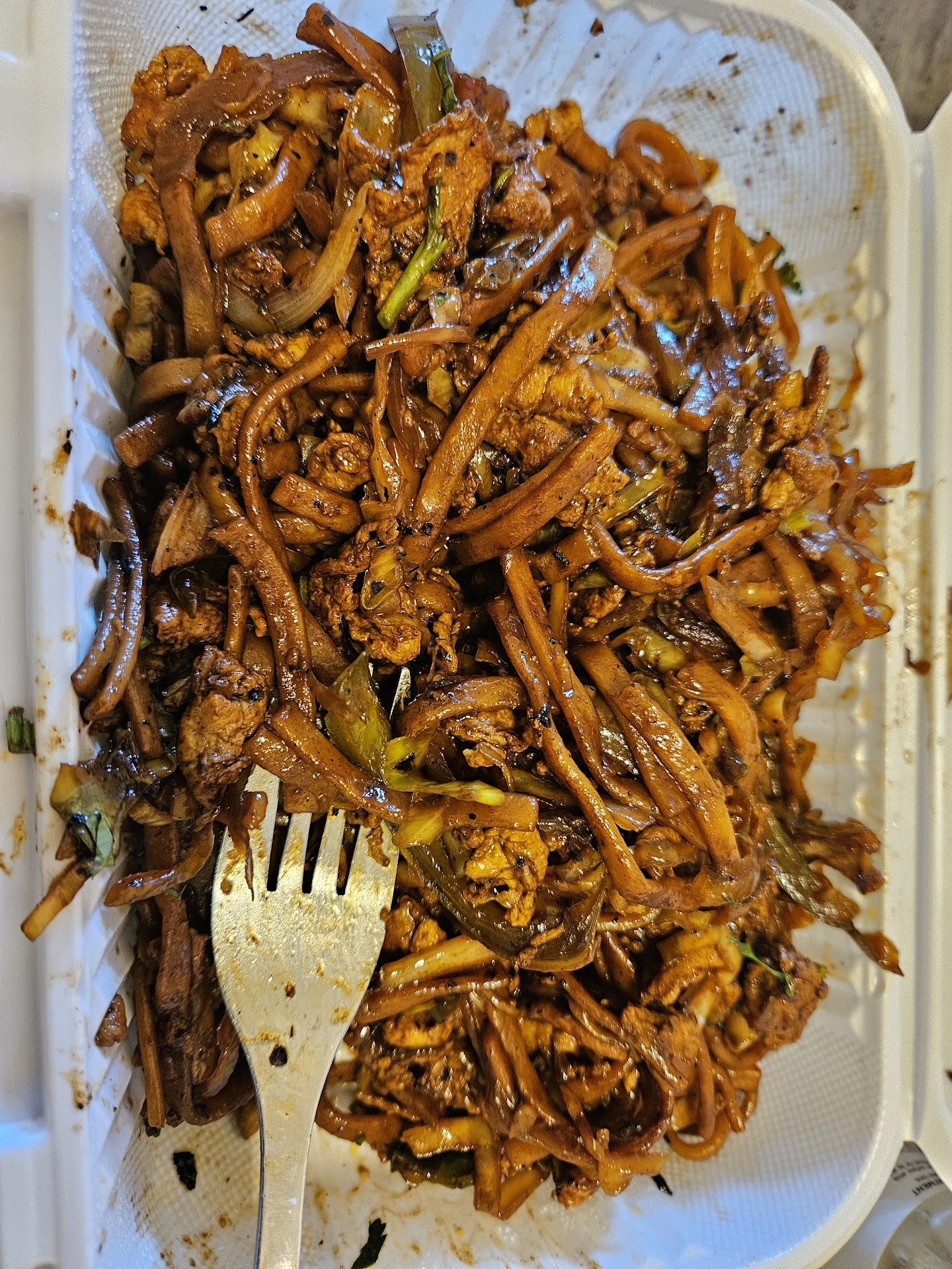 We ordered the Samosa Chaat as an appetizer (WOW, HIGHLY RECOMMEND, so many flavors and a nice balance of textures, and we used the naan to scrape up every bit of sauce left over), the Desi Butter Chicken (super tender bone-in dark meat with a delicious savory red sauce), garlic naan (crispy like thin-crust pizza and honestly just perfect), and two mango lassis.