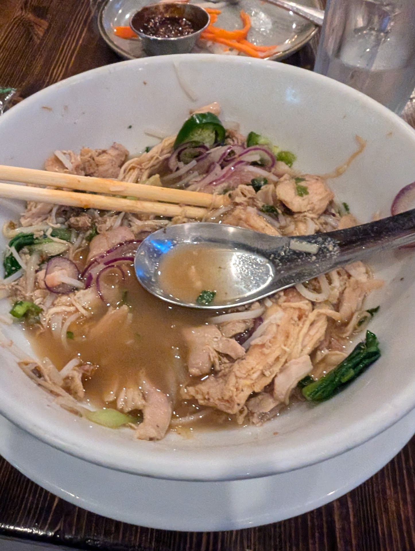 I ate all the noodles, and left just about 80% of the chicken (and took a photo). This was unprecedented 𤣠-- I almost always leave nothing behind from a bowl of pho š¤£, and sometimes just the broth if there's too much of it.